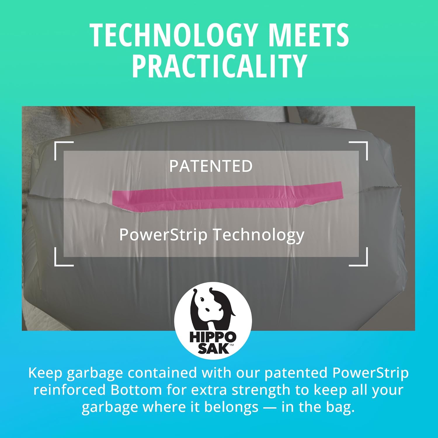 UNBEATABLE STRENGTH AND DURABILITY: Made in the USA, our recycling ocean bound trash bags are 10 times stronger than the leading brands and puncture resistant. With a thicker design and 4-ply extra-wide handles, Hippo Sak eco friendly trash bags offer superior strength and durability to prevent leaks, tears, and spills