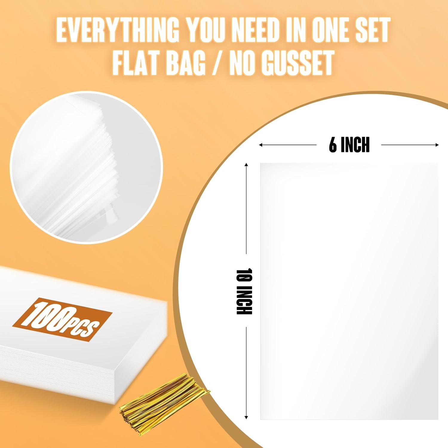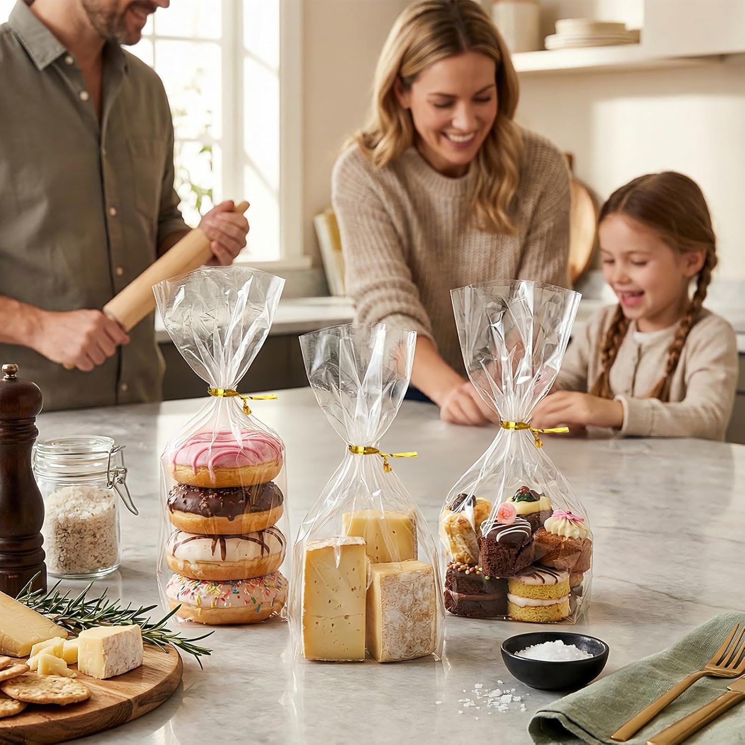 【Value Set: 100 Bags + 100 Twist Ties】 This complete set includes 100 clear cello bags and 100 metallic twist ties, giving you everything you need to package treats securely for parties, events, and gifting.