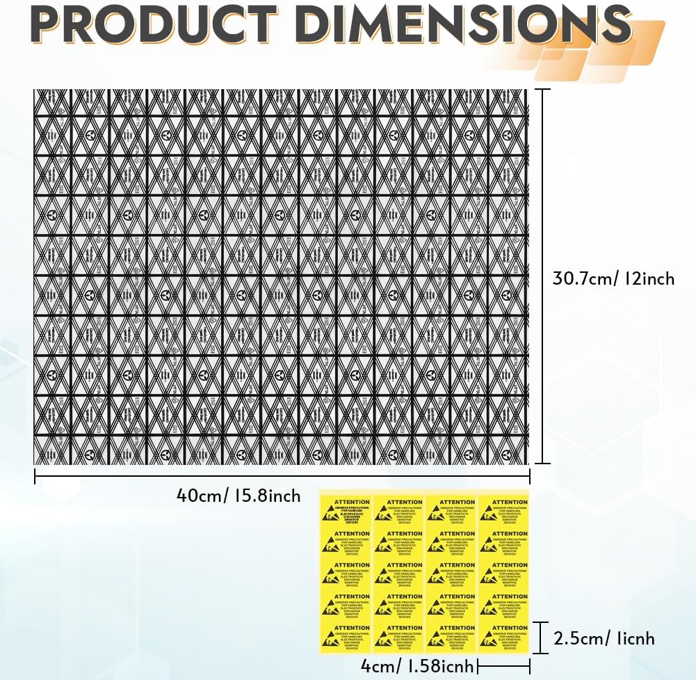 Package includes 20 PCS reusable top open design anti static bags and 20 PCS Self adhesive ESD shielding anti static sign stickers to seal up the bags