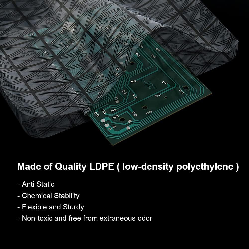 The Anti-static reusable bags are made of Quality LDPE ( low-density polyethylene ) which is not only Chemical Stability,Flexible and Sturdy, but also Non-toxic and free from extraneous odor, it guard PC parts and electronics from ESD effectively