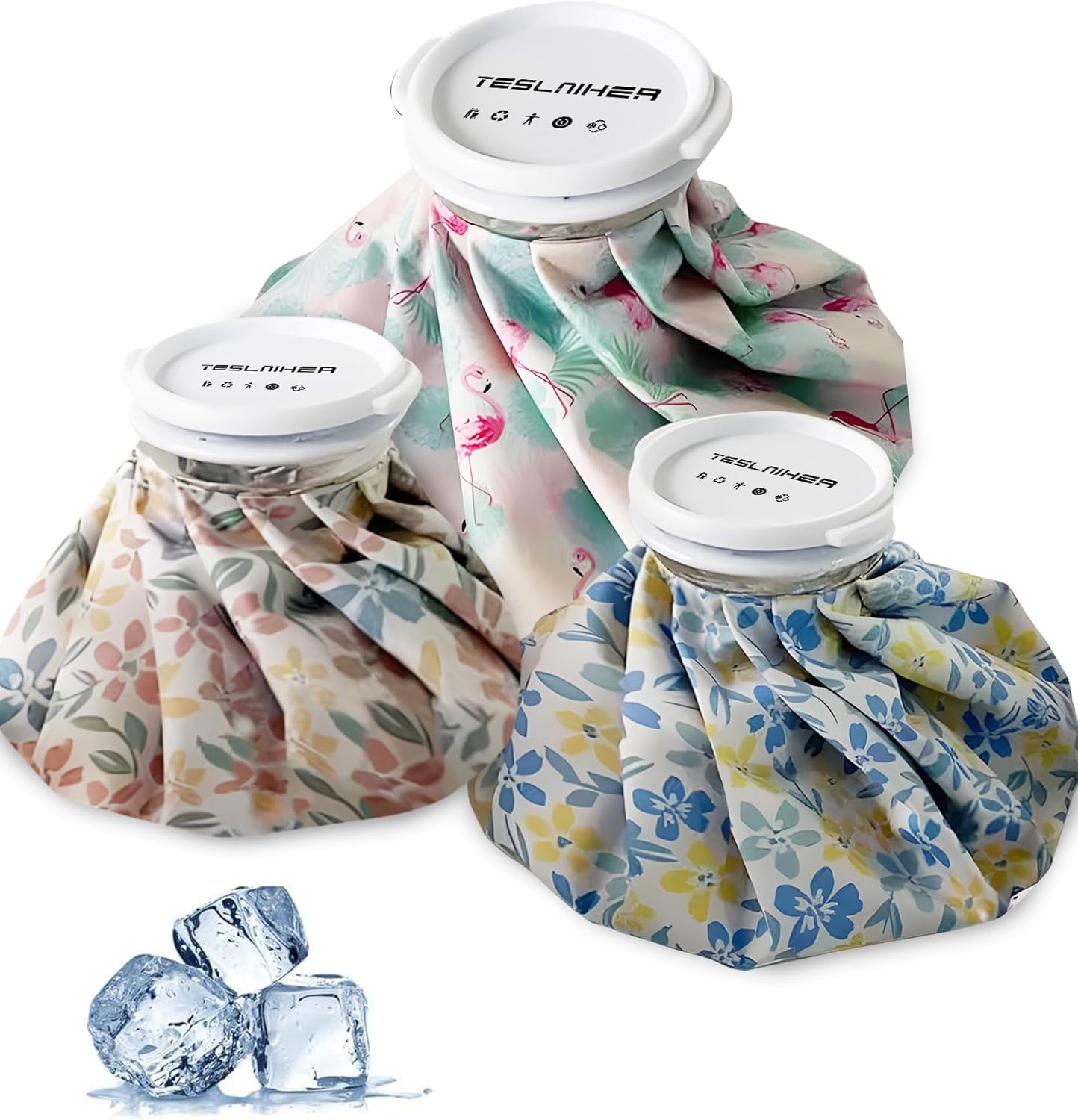 Ice Pack Bags for Injuries Reusable 3 Packs, Ice Bag Cold Pack Water Bag Hot Bag for Pain Relief, Leak-Proof Elastic Ice Bag, Size 6 9 11“