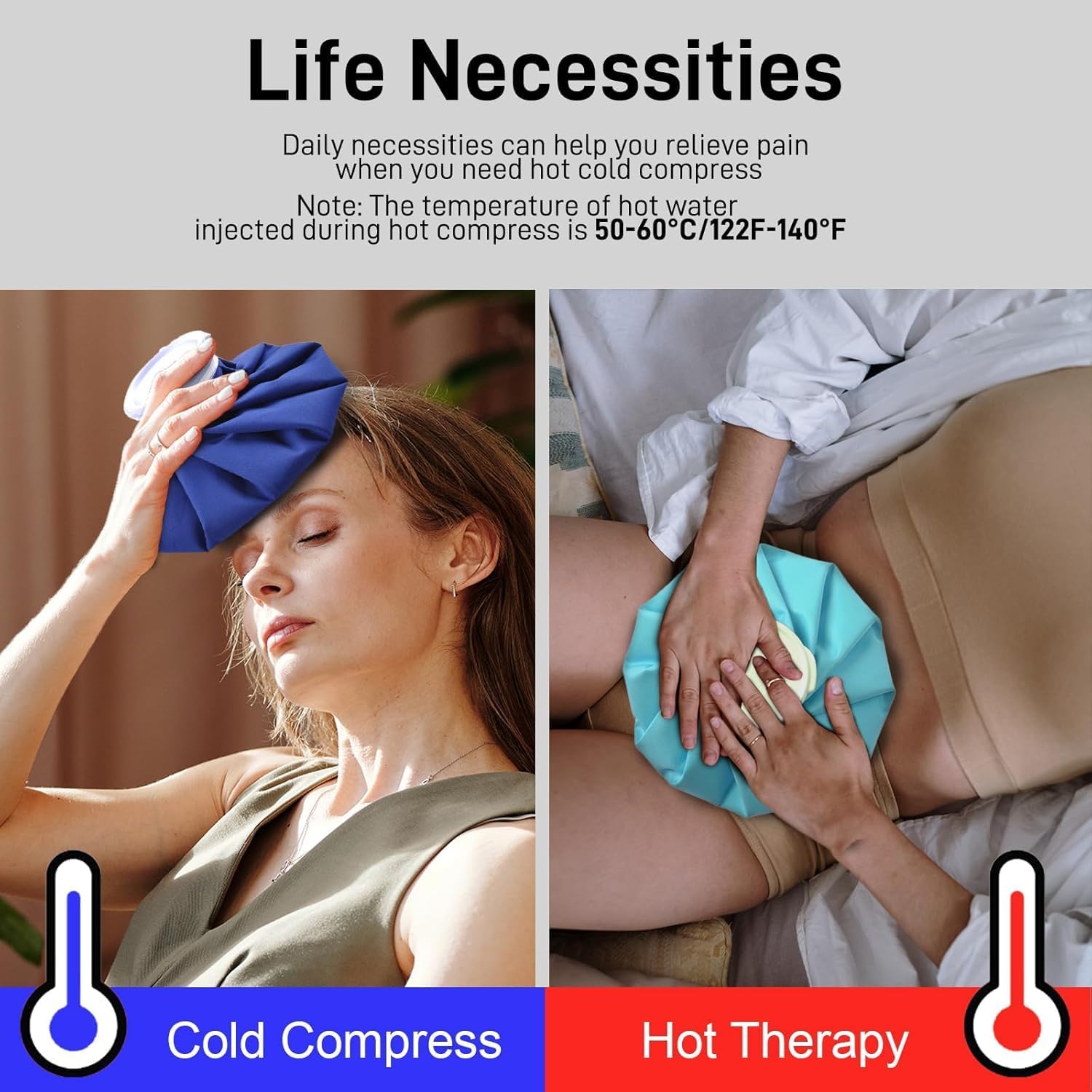Easy to Use:Ice pack is simple to use. just add the ice or hot water then apply the ice pack to the desired area for cold and hot compresses. Tips: Cold Compress: Fill the 2/3 of ice bag with ice and water. Hot Compress: Add hot water (Not Boiling Water, Notice: The temperature is 50-60℃/122℉-140℉.)