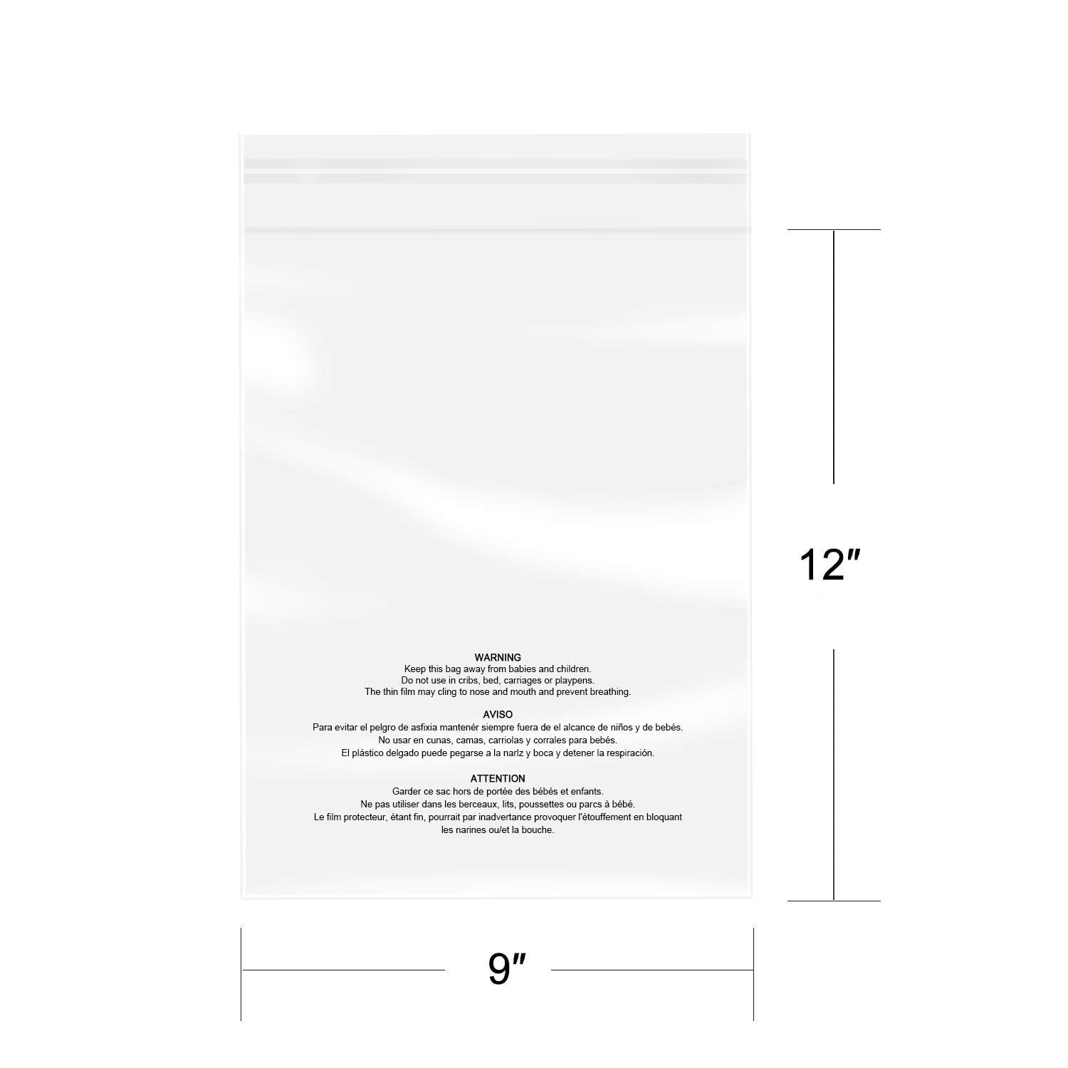 [Product Feature]- 100 Pcs – 9″ x 12″ Usable Dimension (Excludes Glue Flap). 1.6 Mil Thickness self-seal Clear Poly Bags Printed with Suffocation Warning.