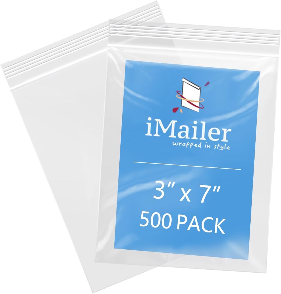 iMailer – 3″ x 7″ 500 Pack- 2 Mil Resealable Zip Bags- Small Clear Plastic Bags for Storage, Organizing, Crafts, Snacks, Jewelry, Hardware