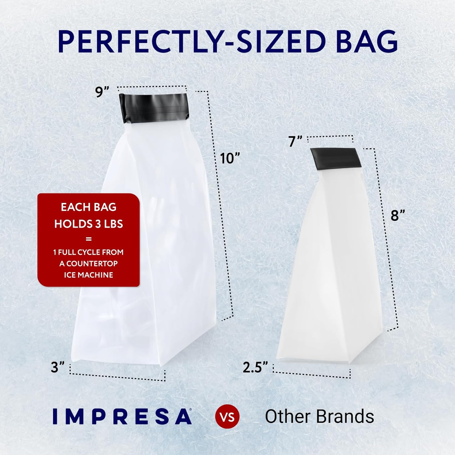 IMPRESA Ice Storage Solution: Elevate your ice storage experience with the IMPRESA Large Reusable Ice Bag Set, designed to keep your freezer organized and ice readily accessible. Ideal for those needing a reliable ice container for the freezer, these bags simplify bulk ice storage & ensure freshness