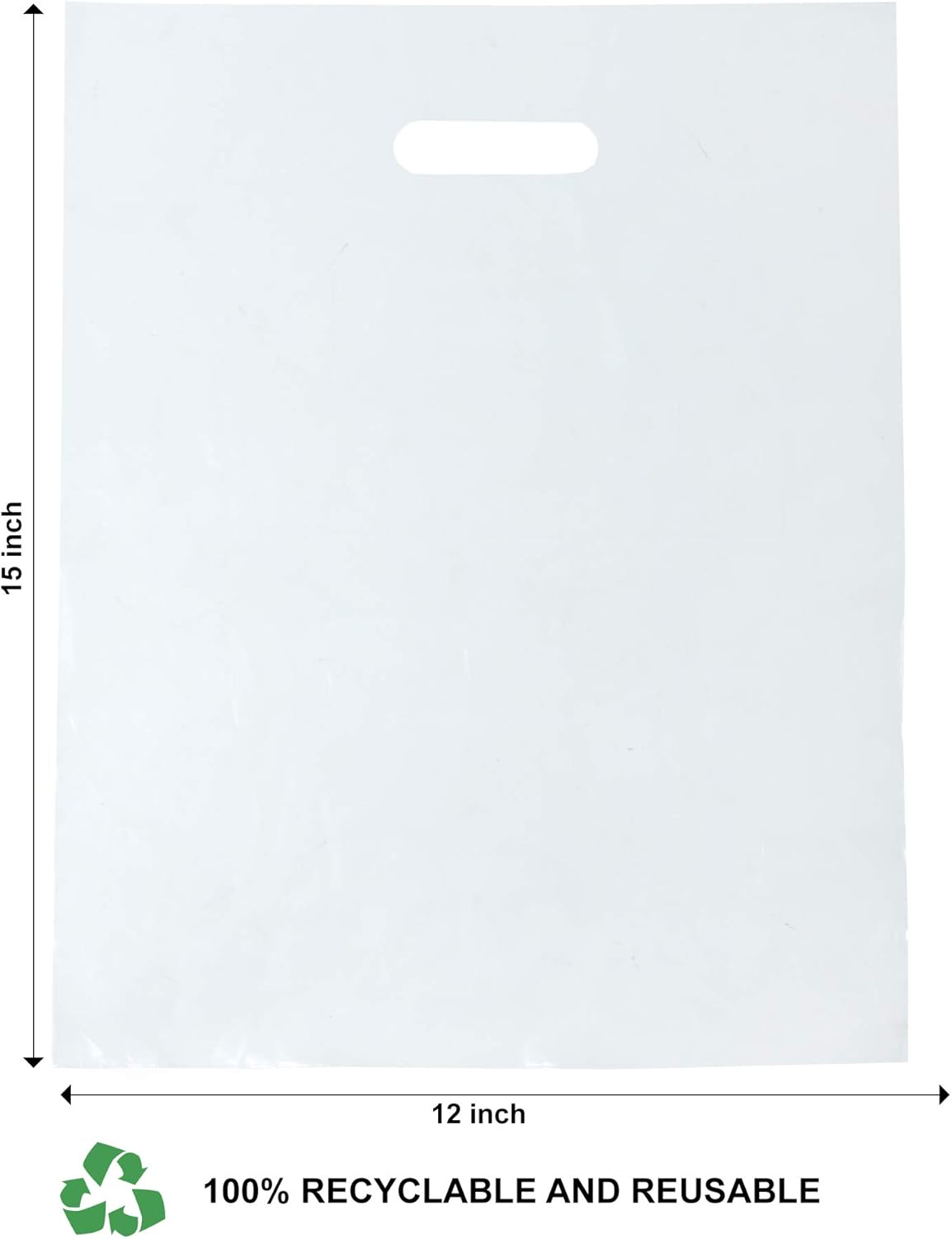 STURDY AND DURABLE: Made of 1.25 mil thick low-density plastic, these non-gusseted clear bags are lightweight but can hold various items. Plus, the sturdy die-cut handles make it easy to carry without tearing. Note: These bags can be recycled depending on local recycling programs
