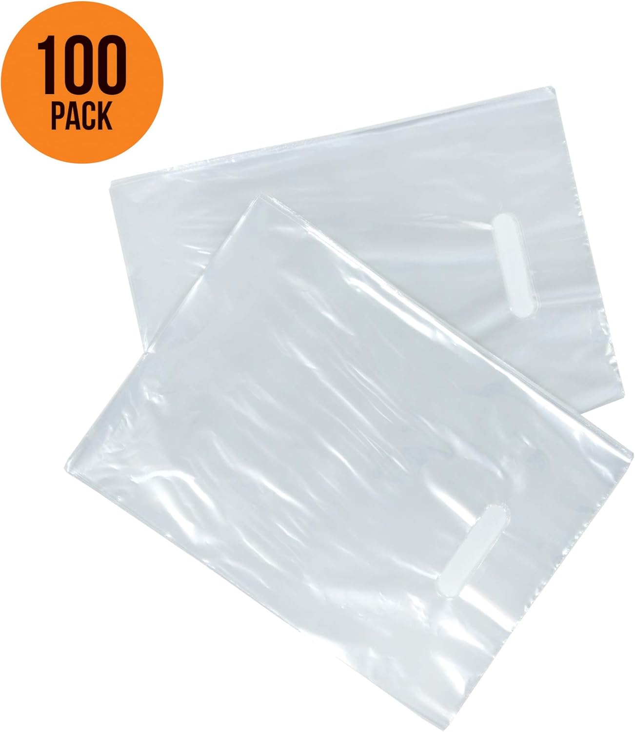 CLEAR/TRANSPARENT LDPE HANDLE BAGS: Pack includes 100 pieces of clear plastic bags with die-cut top handles and no gusset. Personalize it with your own logo, labels, artwork and stickers for a more personal touch.