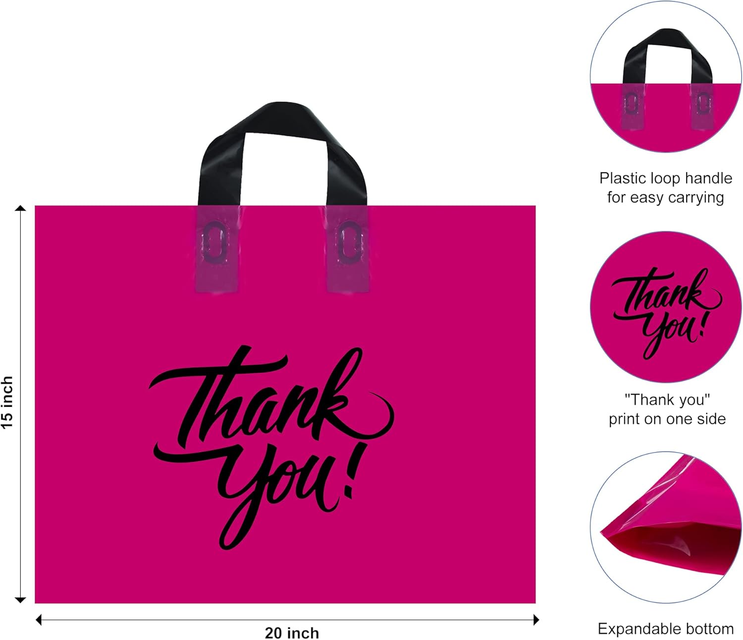 Infinite Pack Large Thank You Merchandise Bags w/Loop Handle, Glossy Boutique Bag, 3″ Bottom Gusset & 3 Mil Thick