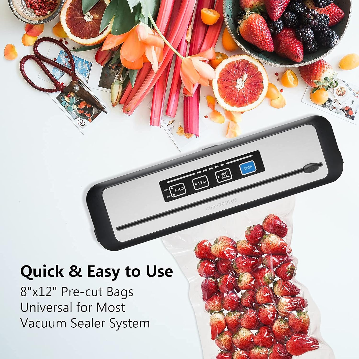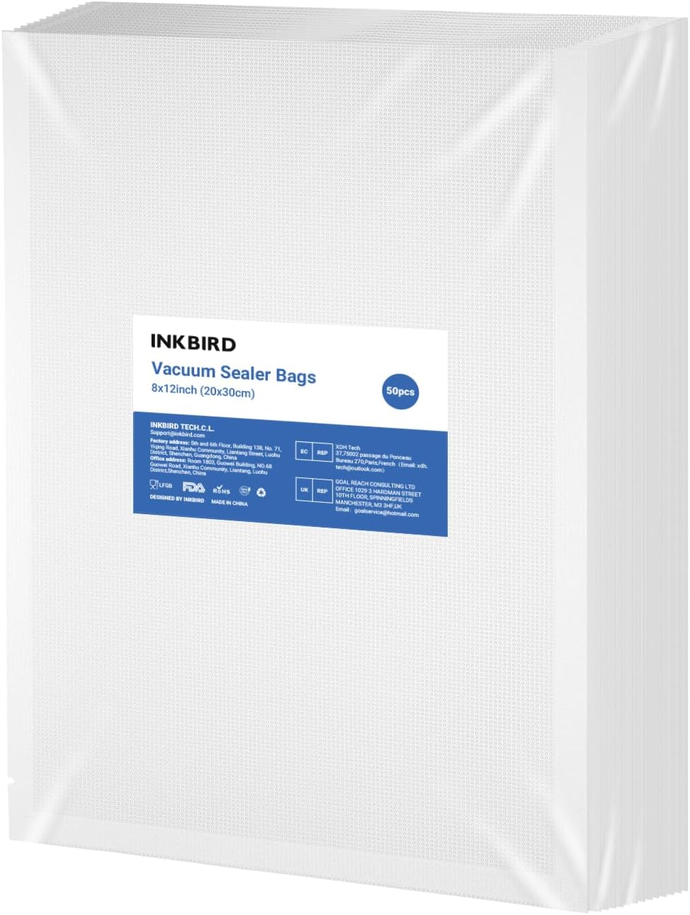 INKBIRD Vacuum Sealer Bags for Food Saver, 50 Count 8×12 Inch, Seal a Meal, Precut Vacuum Bags for Sous Vide Cooking with Commercial Grade, BPA Free, Heavy Duty, Reuseable