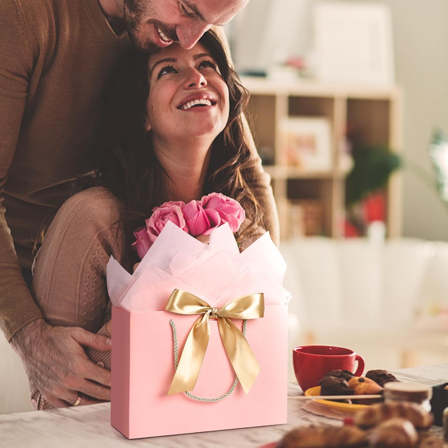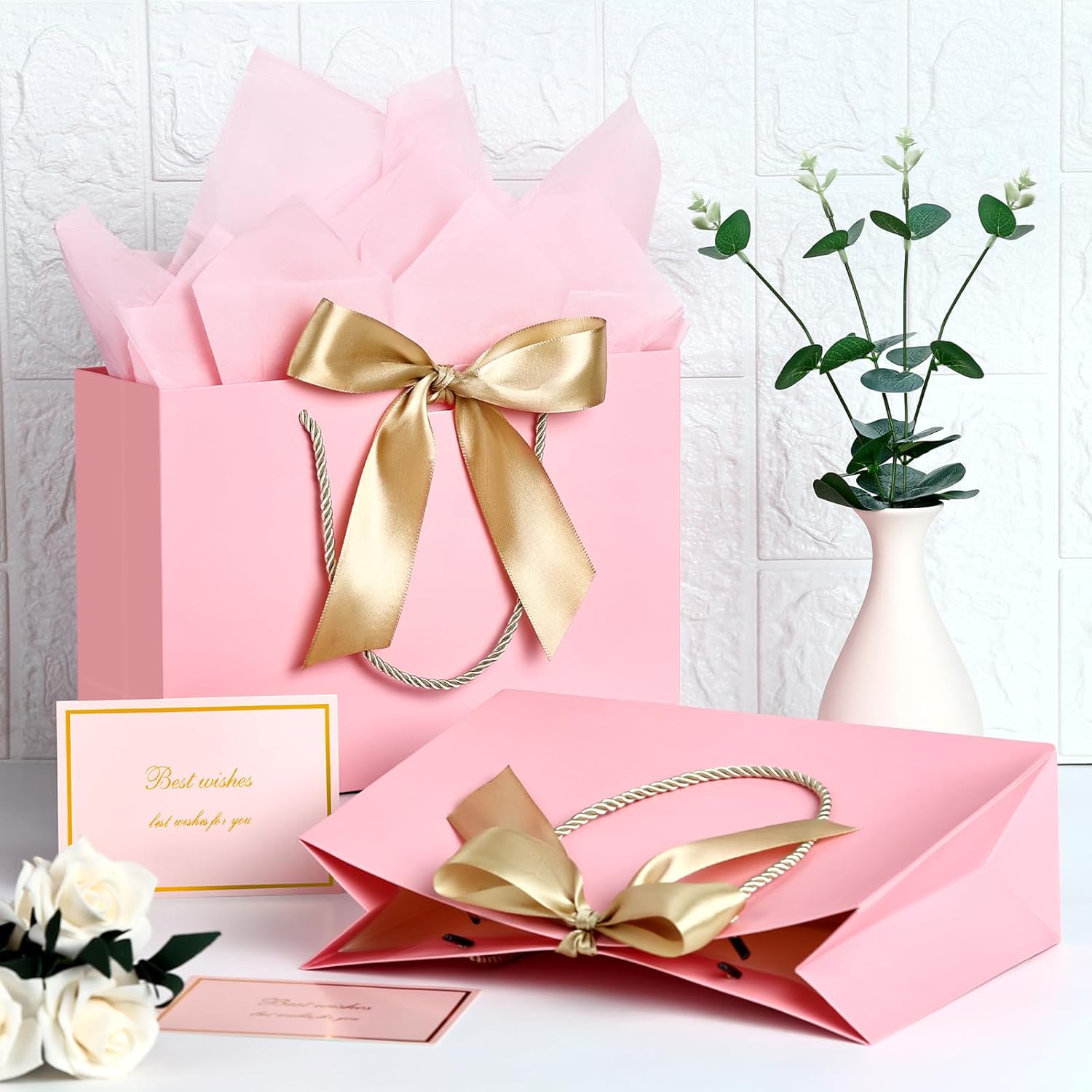 JMANNI Gift Bag, 1PCS Gift Bags Large with Ribbon and 1 Greeting Cards 2 Tissue Paper, Portable Paper Gift Bag with Handles, Birthday Gift Bags, Valentine’s Day, Present Bags for Christmas Wedding Party Mothers Day