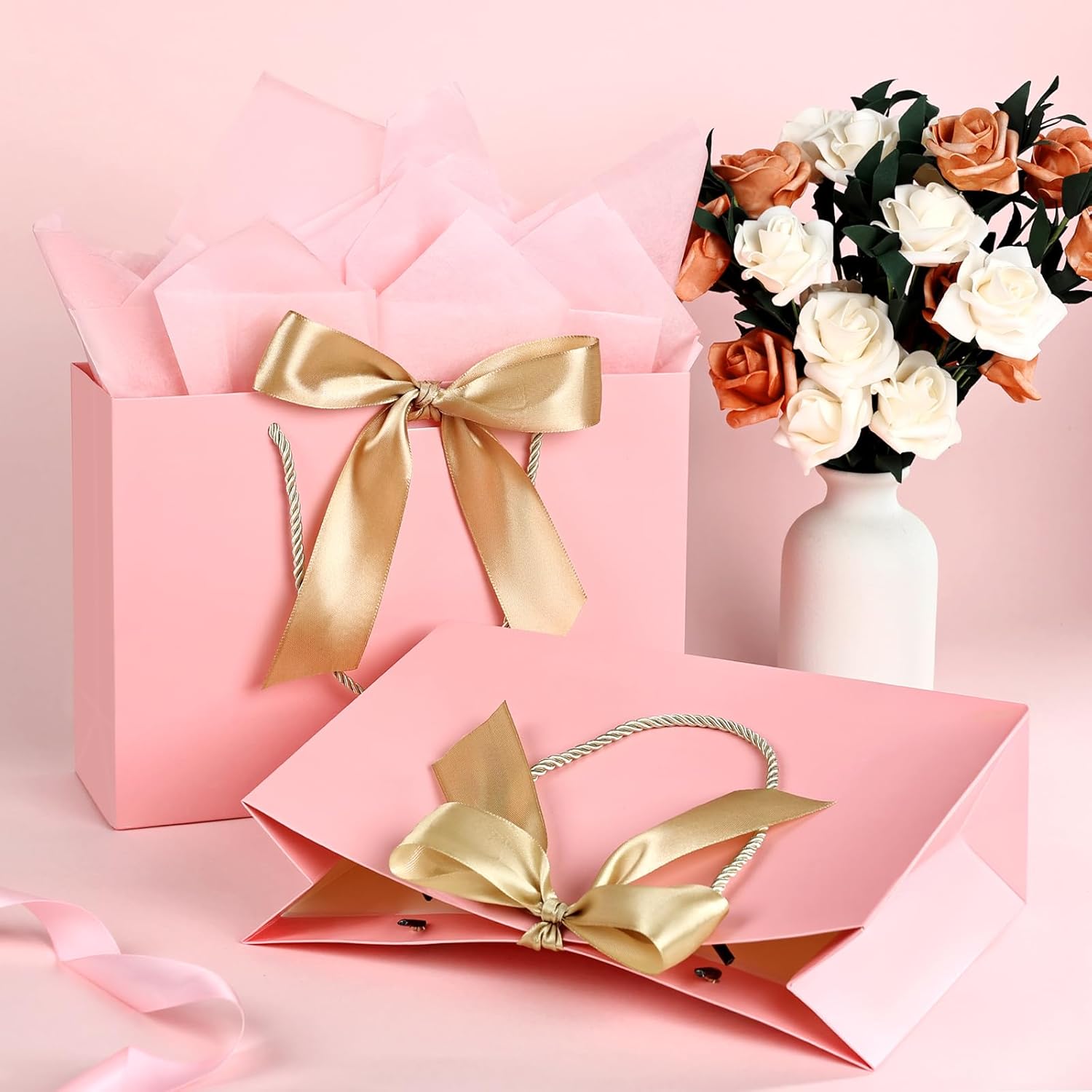 BOW RIBBON DESIGN- The ribbon bows with gift bags will not only add an elegant high-end atmosphere ,but also enrich your gift, making your gift more luxury and special. With the chic look and brilliant quality,the gift bag will be appreciated by the recipient not only what’s inside but the overall presentation.It will create sweet memories for your and receiver.