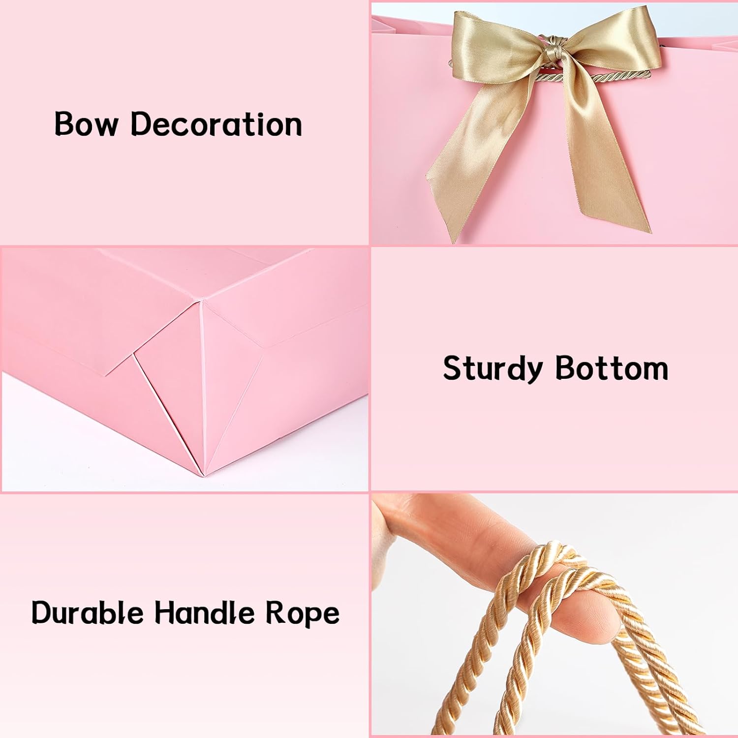 PERFECT QUALITY SUPER DURABLE FOR ALL- Made of premium environmental friendly material,the paper gift bags are sturdy and recyclable.They are thick enough to hold up well and not easy to break,and the robust handle and bottom make it easy to take around.The surface of bags is waterproof and dustproof.