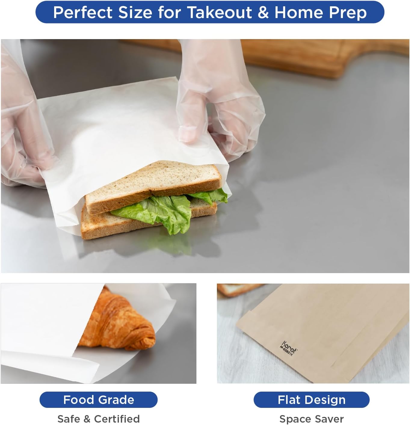 Brand Signature – Each bag is printed with the Karat logo on the back, showcasing the brand’s commitment to quality and style. A great alternative to brown paper bags or wax paper sandwich bags.