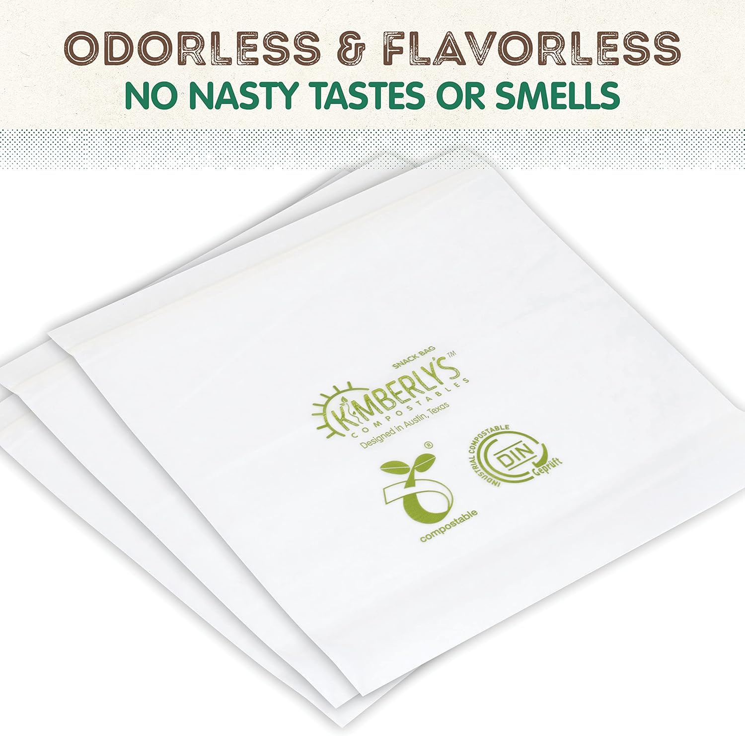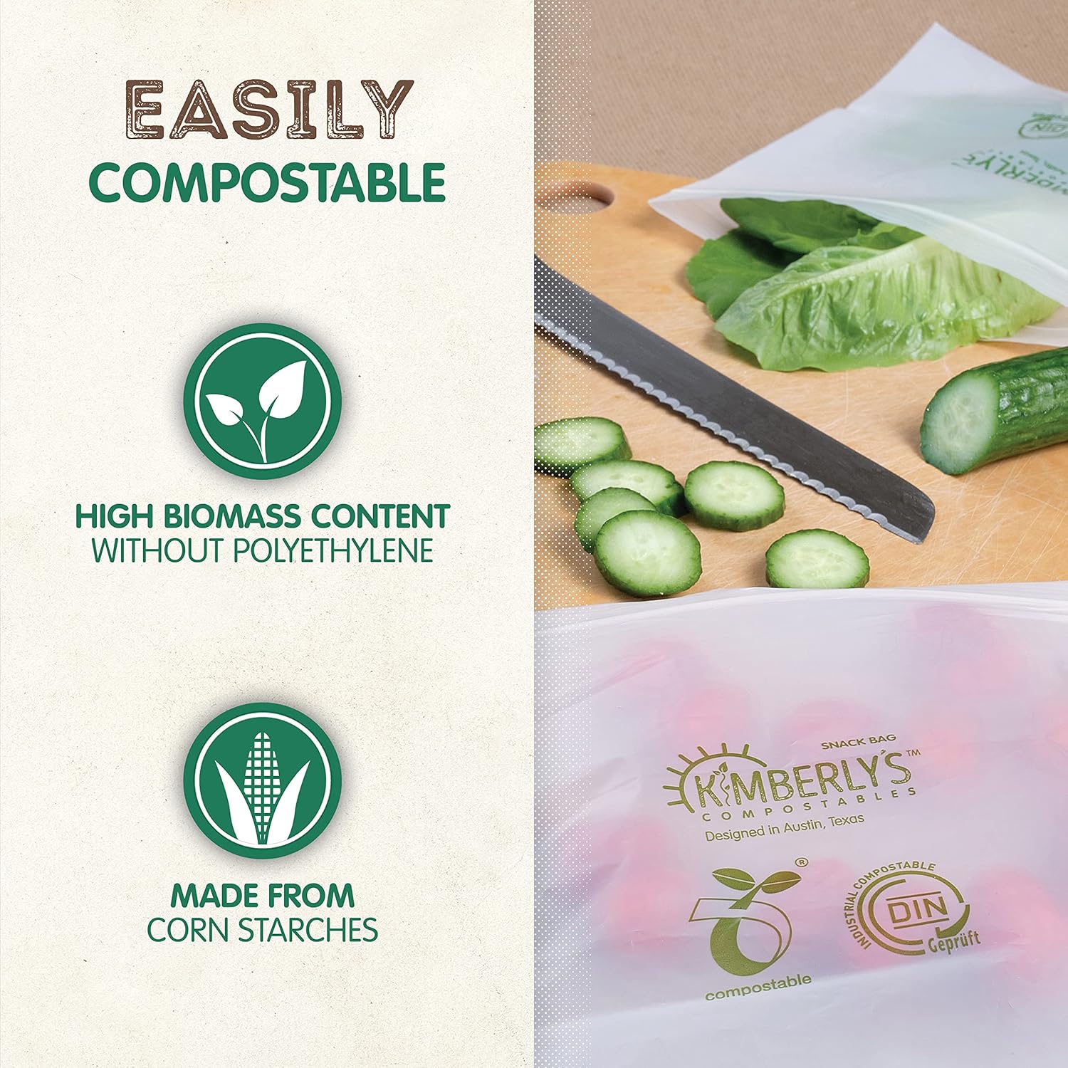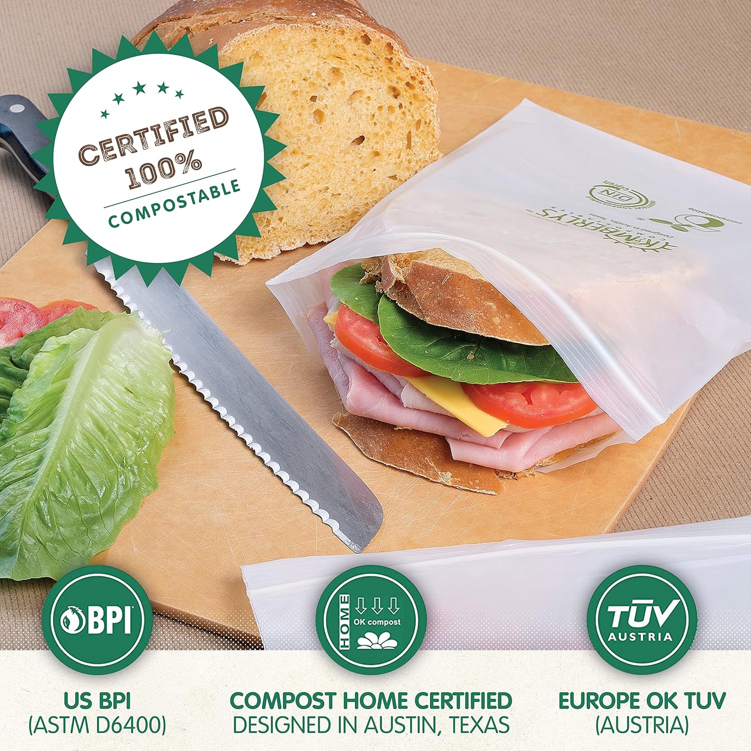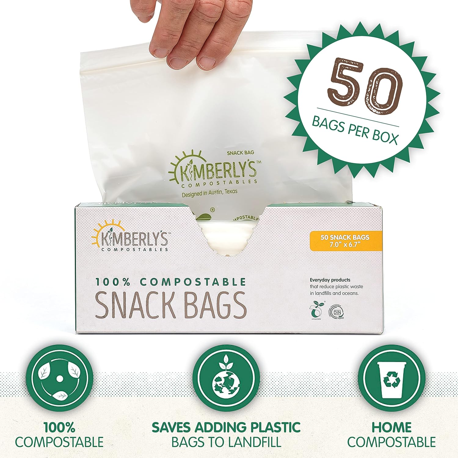 KC’s Compostable Sandwich & Snack Bags – 50 Count, 7×6.7 in Resealable Extra-Thick 50µm Plant-Based Cornstarch Bags – Certified ASTM D6400 & OK Compost HOME – Leakproof, Odorless & Durable