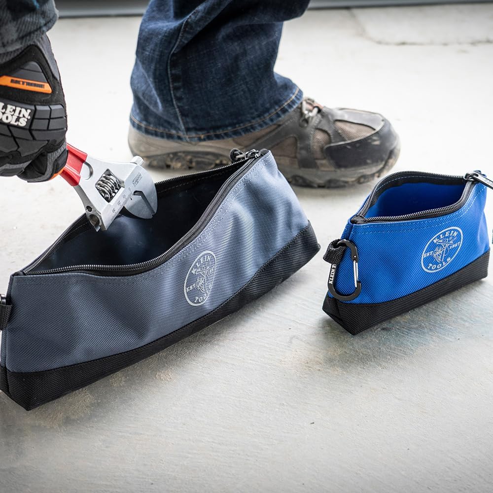 Klein Tools 55569 Stand-Up Zipper Bag Tool Pouch with Carabiners, Reinforced Gusseted Bottoms, Water Resistant 1680d, Multi-Size 5-Pack