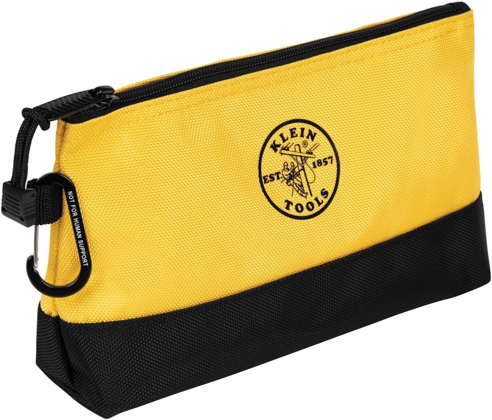 Easily access and organize tools and small parts with the Klein Tools Stand-up Zipper Bags. These gusseted bags have 2520d reinforced bottoms that help reduce sharper tools and parts from wearing through and stand up for easy access. Set includes 5 bags: 14-Inch long (35.56 cm) dark gray bag, 7-Inch long (17.78 cm) royal blue bag, 9-Inch long (22.86 cm) light gray bag, 8.5-Inch long (21.59 cm) orange bag and a 10-Inch long (25.4 cm) yellow bag. Each includes a carabiner to easily attach to tool bags and belts (not for human support).