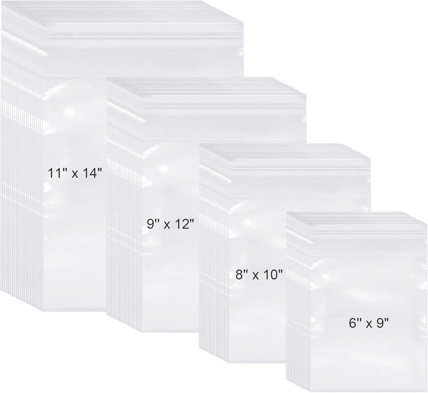 Detailed Measurement: these clear packaging bags come in 4 different sizes, including 6 x 9 inches, 8 x 10 inches, 9 x 12 inches and 11 x 14 inches, 150 pieces of each size, which can easily meet your different size needs