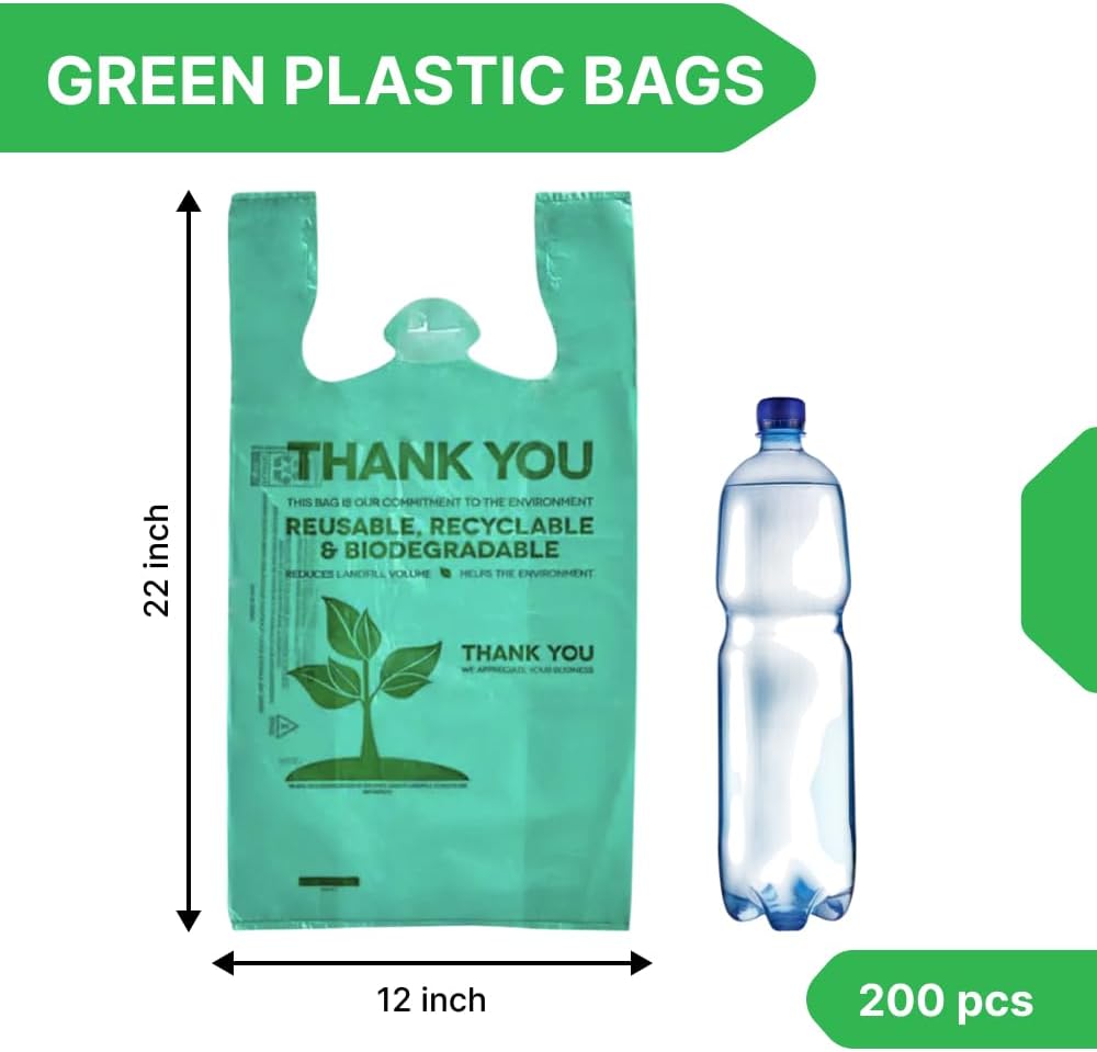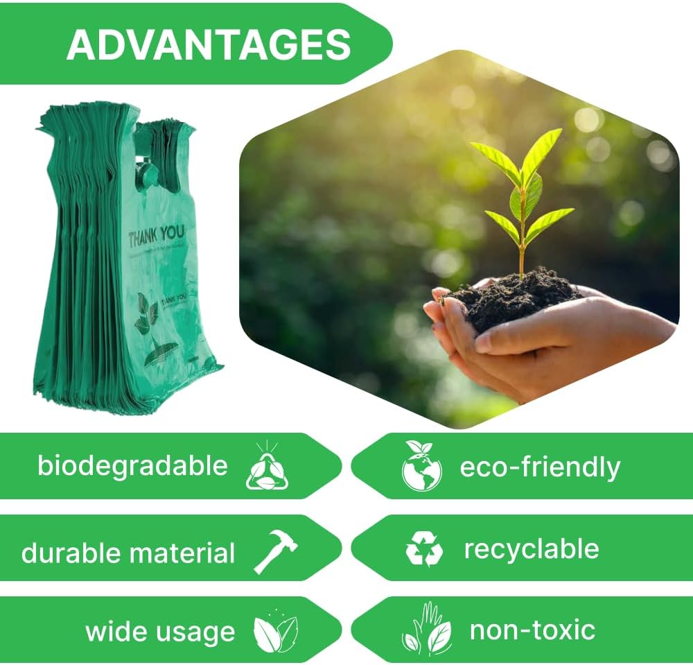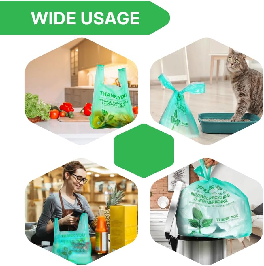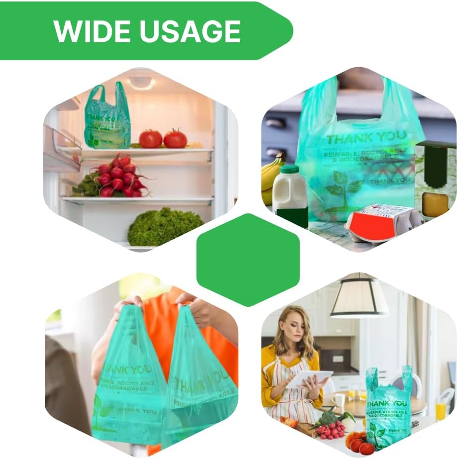 Lakesstory Biodegradable Green T-Shirt Bags | Compostable Grocery Bags | Eco-Friendly Plastic Bags