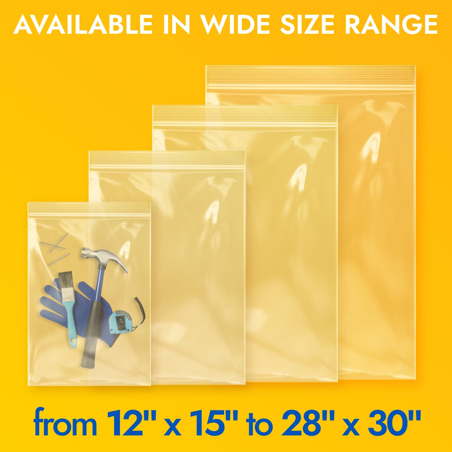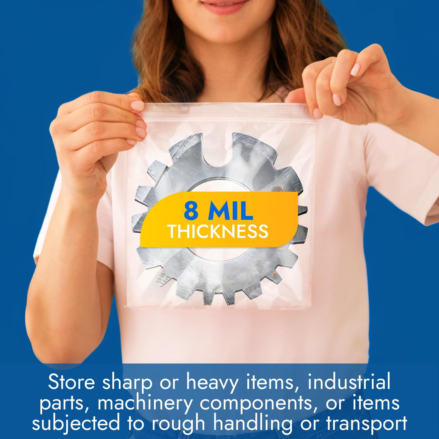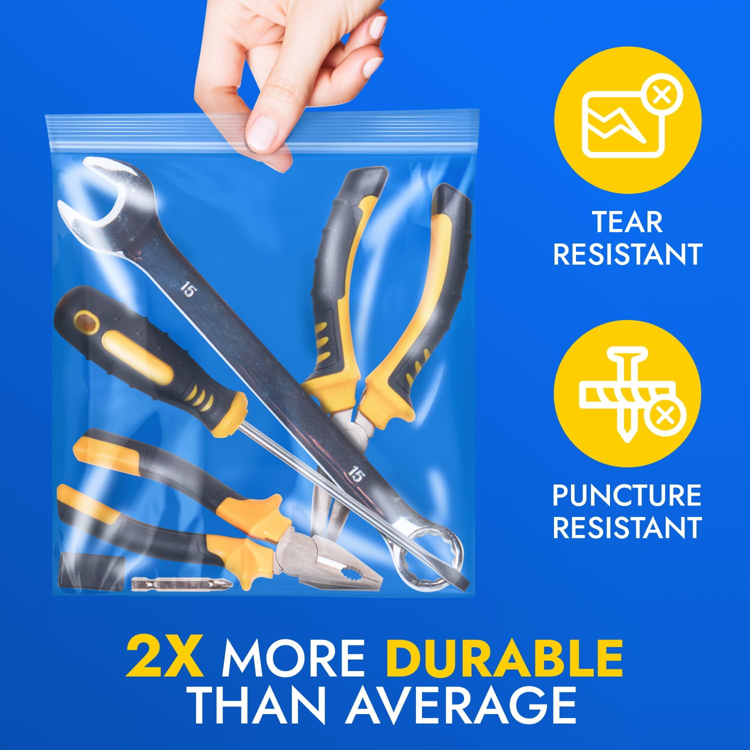 Heavy-Duty Clear Zip Seal Lock Bags: Paclord reclosable large zip seal lock bags are made from durable 8 mil polypropylene, offering 2x more durability than average poly bags. Our clear zip bags allow you to easily identify what is stored inside