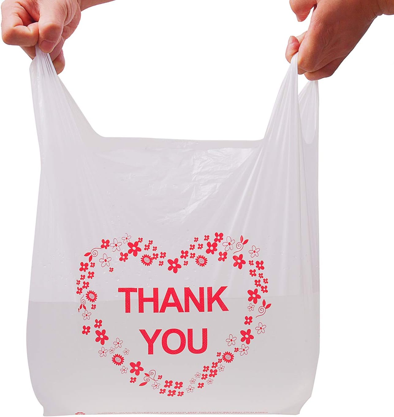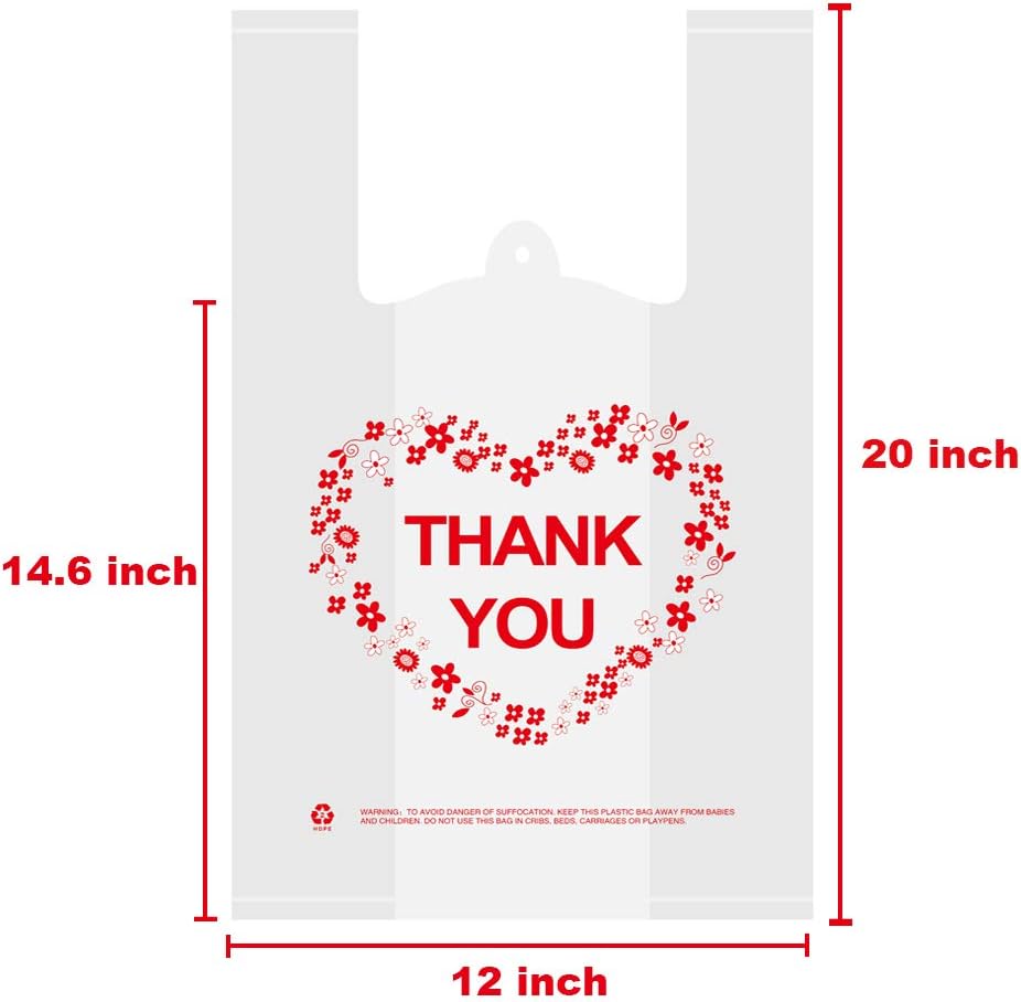 LazyMe Thank you T Shirt Bags, Bolsas De Plastico Para Negocio, White Plastic Grocery Bags with Handles, Standard Supermarket Size, 12 x 20 Inches (50 pcs)