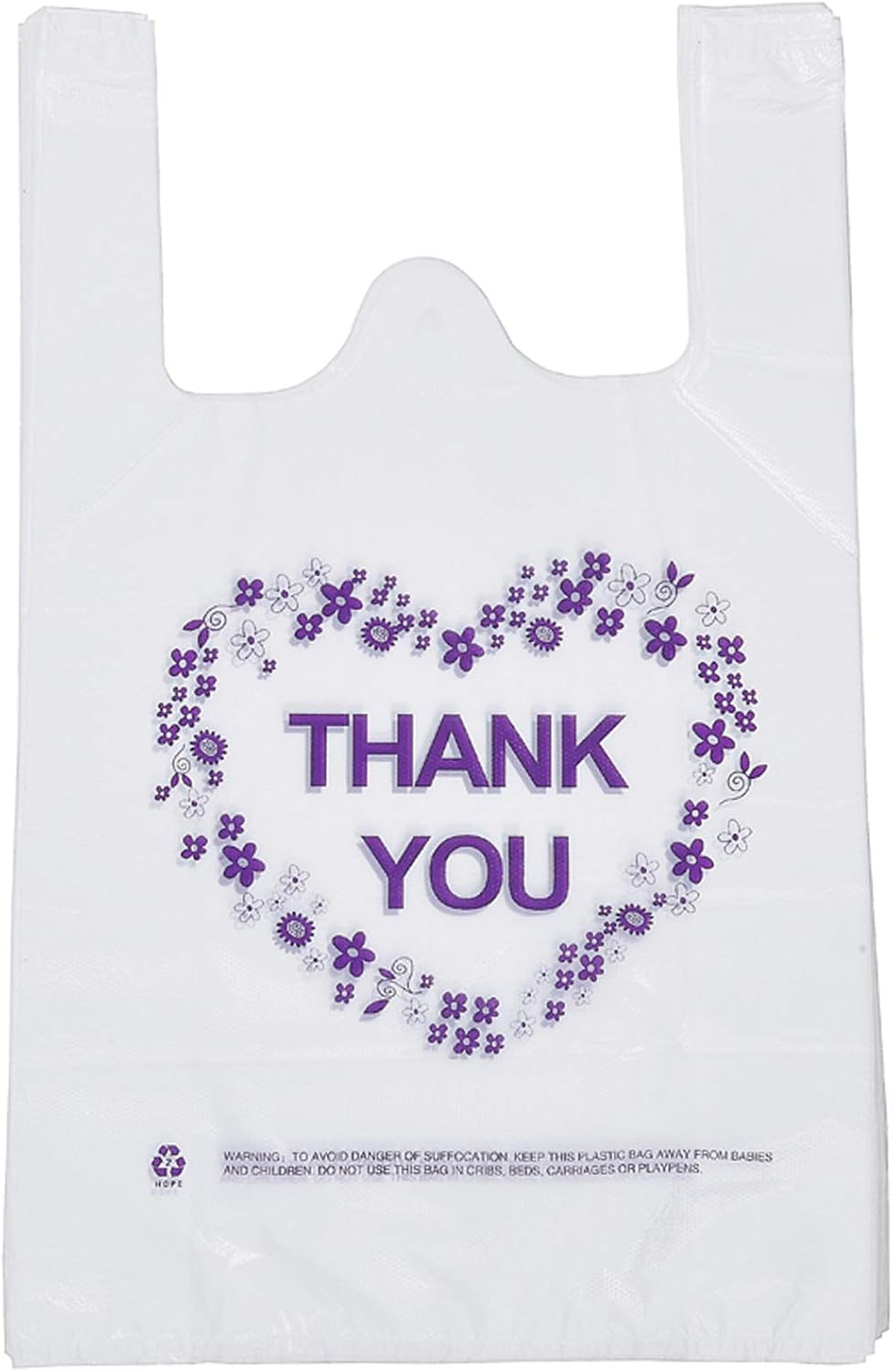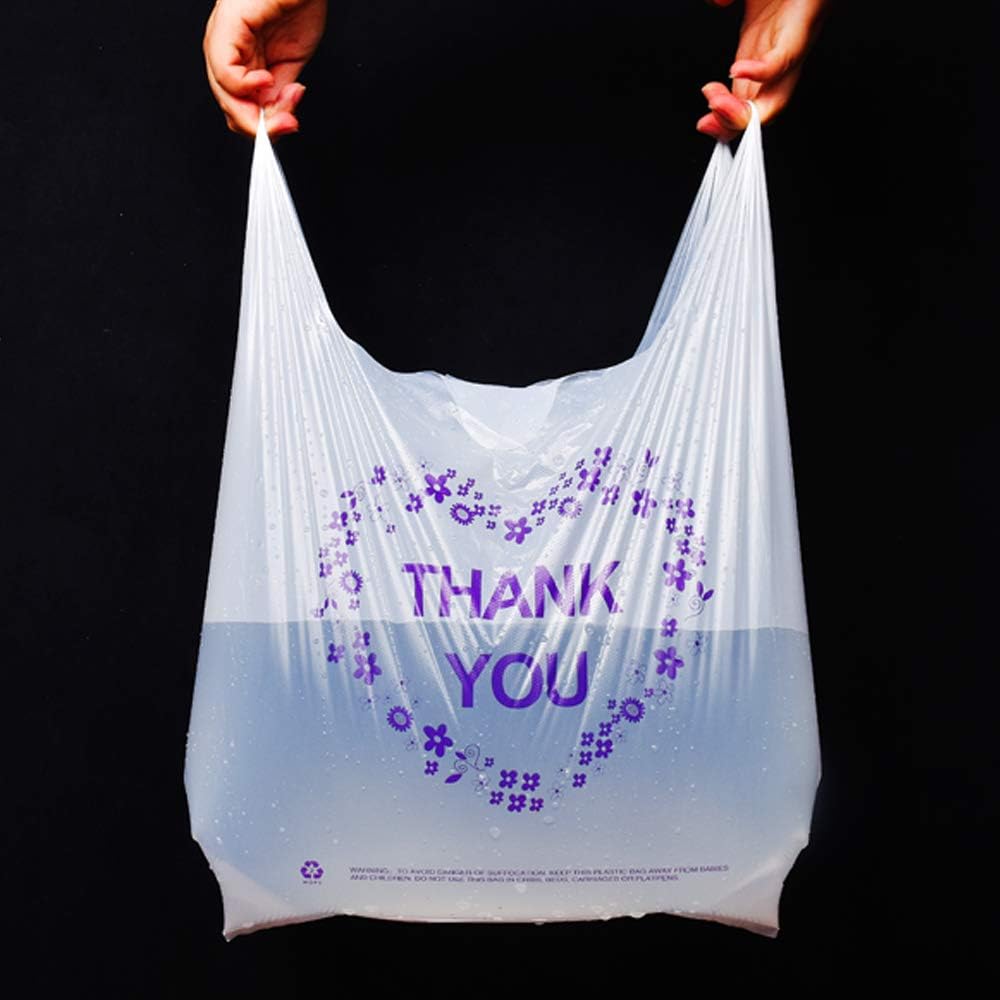 LazyMe Thank You T Shirt Bags, White Plastic Grocery Bags with Handles, Standard Supermarket Size, 12 x 20 inch (100 PCS)
