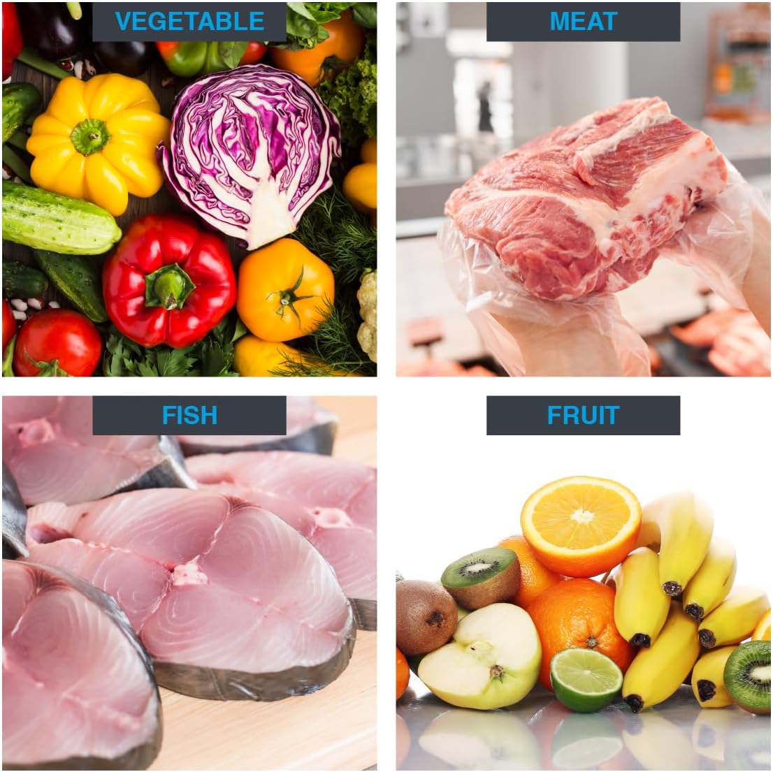 FOOD-SAFE LDPE MATERIAL – Made from premium low-density polyethylene (LDPE), durable and safe for direct food contact with fruits, vegetables, bread, meat, and snacks