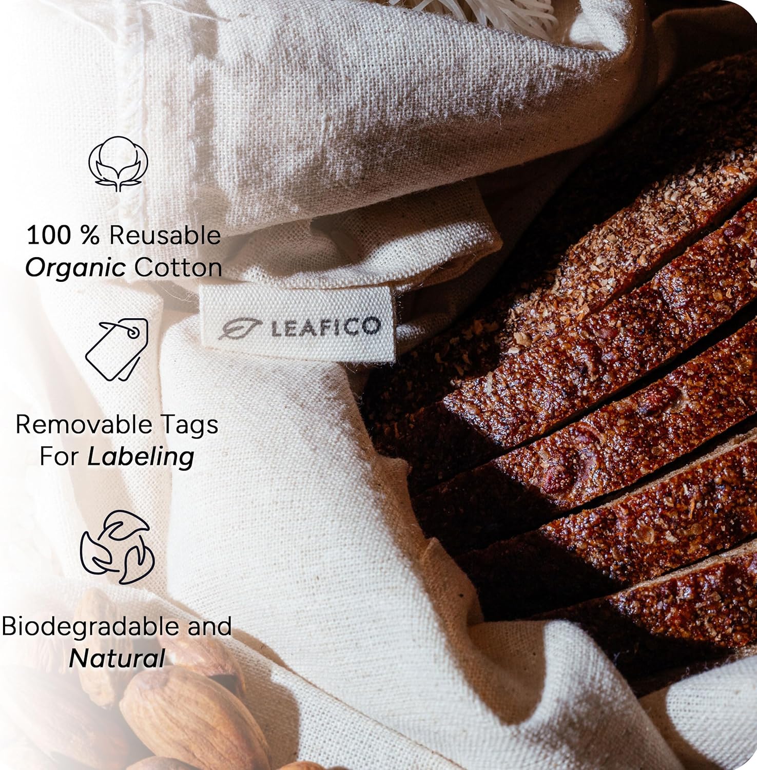 Cotton bags keep bread fresh by allowing airflow, preventing moisture buildup and mold.