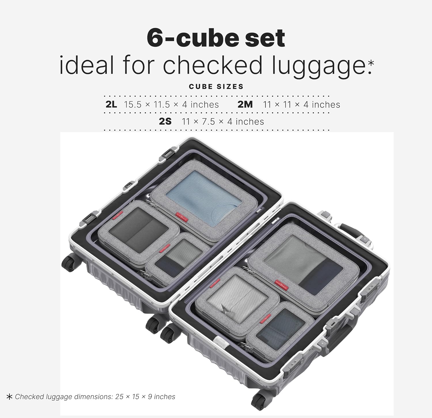 SPACE SAVING DESIGN: Our packing cubes are designed with compression zippers to eliminate excess air, allowing you to pack more efficiently. Enjoy the benefits of a compact suitcase while keeping your clothes and accessories neatly packed and wrinkle-free