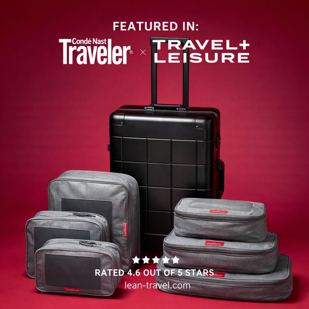LeanTravel Premium Compression Packing Cubes for Travel – Luggage Organizers with Double Zipper – Sturdy Bags for Suitcase (6-Pack, Grey)