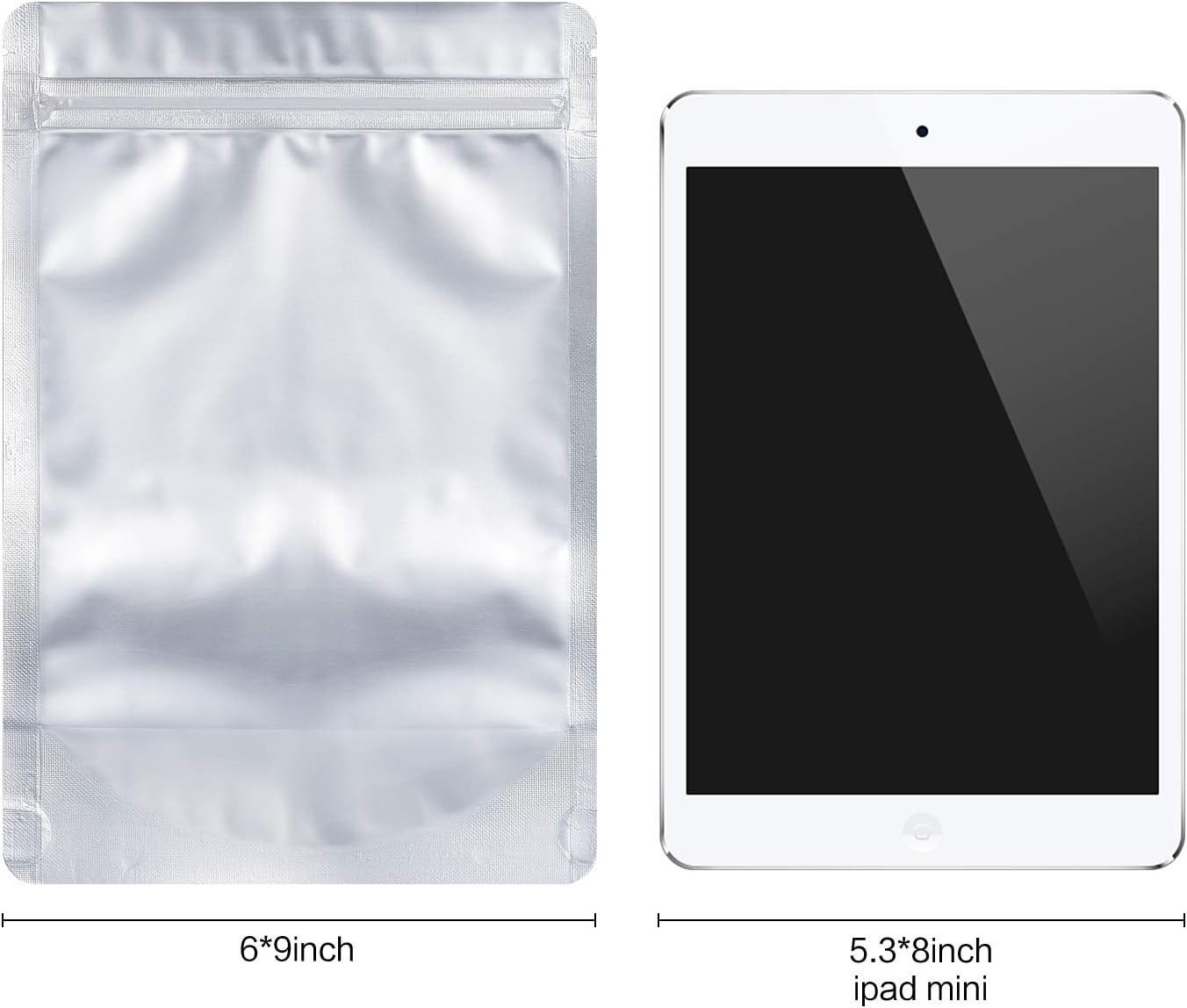 【Great value pack of 100 6×9 inch sealable bags】: 100 pack helps you save money while staying more organized and you can share the great value with your family or friends as well. The convenient size of 6″x9″ allows the stand up pouches to be helpful for multiple types of food, or anything you want to protect from odor, vapor, water or moisture.