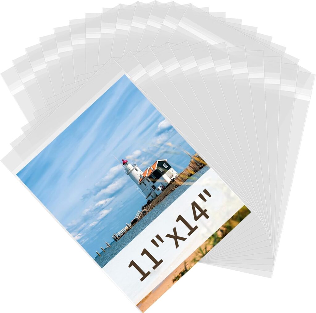 Mat Board Center, 50 Pack 9 7/16″ x 12 1/4″ Acid-Free Crystal Clear Sleeves Storage Bags for 9×12 Art Prints/Pictures/Photos/Framing Mat Mattes