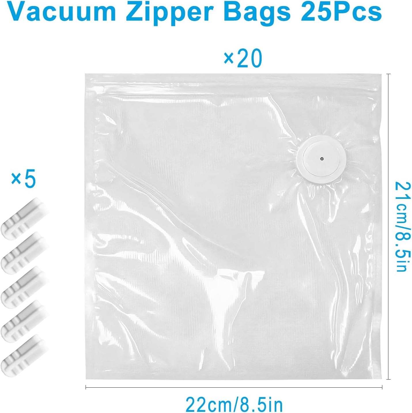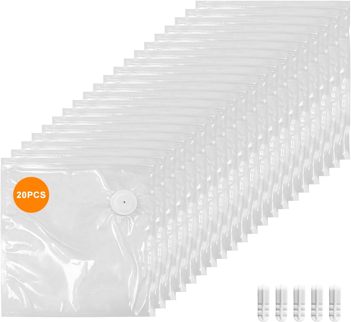 MEGAWISE Vacuum Zipper Bags 20Pcs (8.5 * 8.5in), BPA Free, Reusable Food Storage Bags with Air Valve for Sous Vide Cooking/Freezer/Microwave Heating, with 5 Seal Clips.