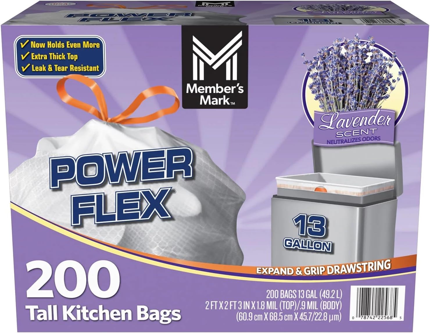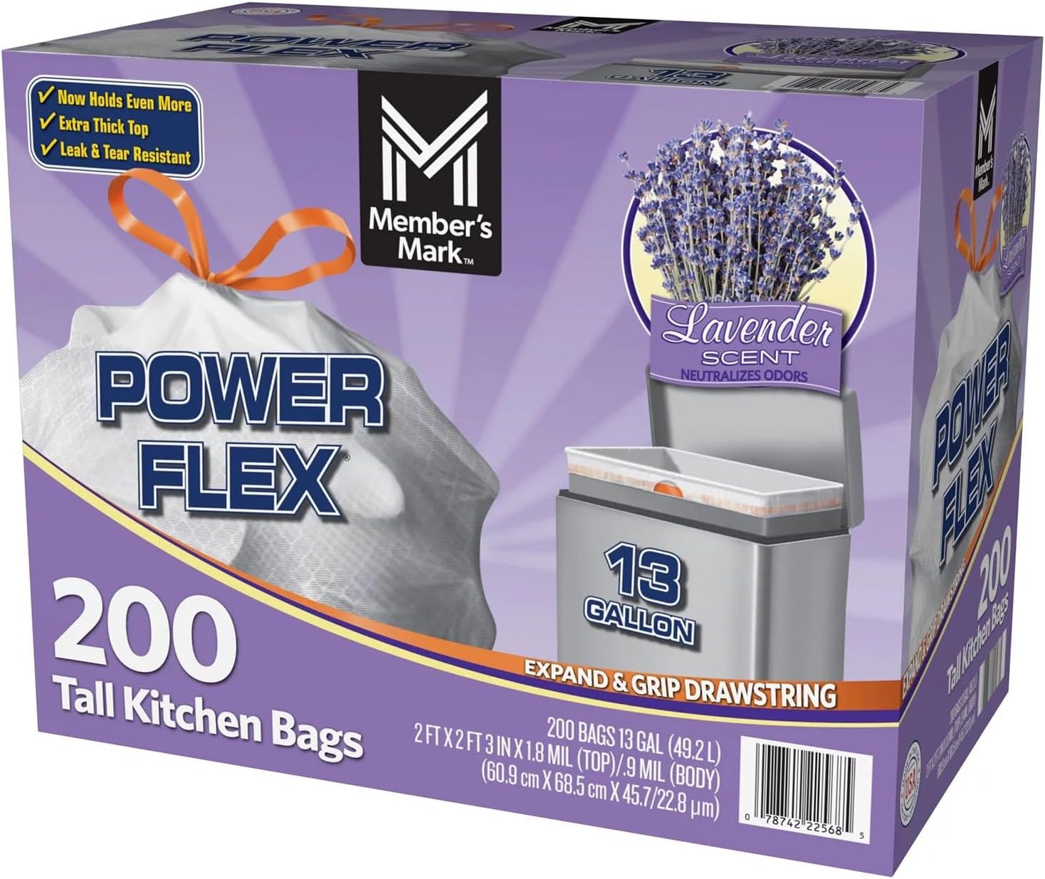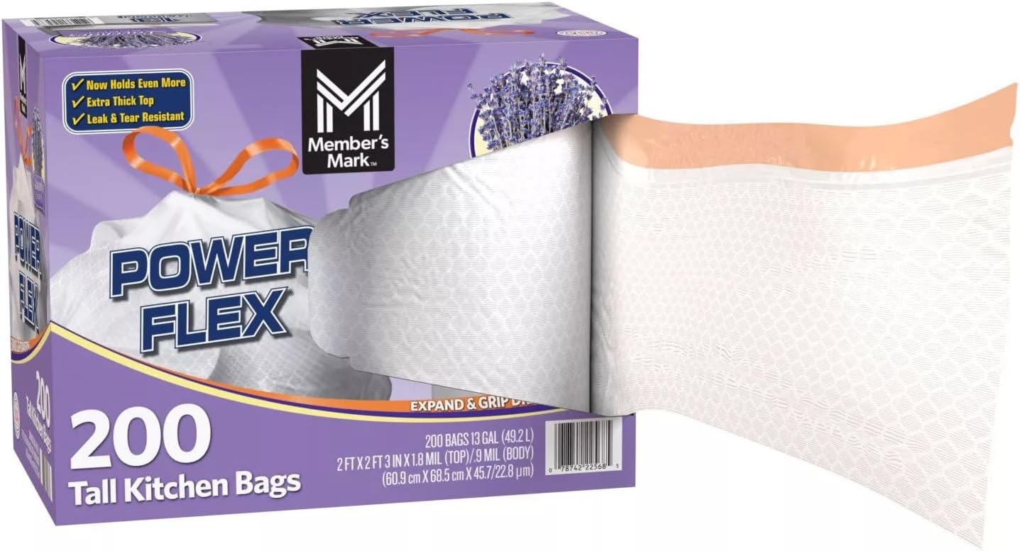 Member’s Mark Power Flex Tall Kitchen Drawstring Trash Bags (13 Gallon, 2 Rolls of 100 ct., 200 count total)