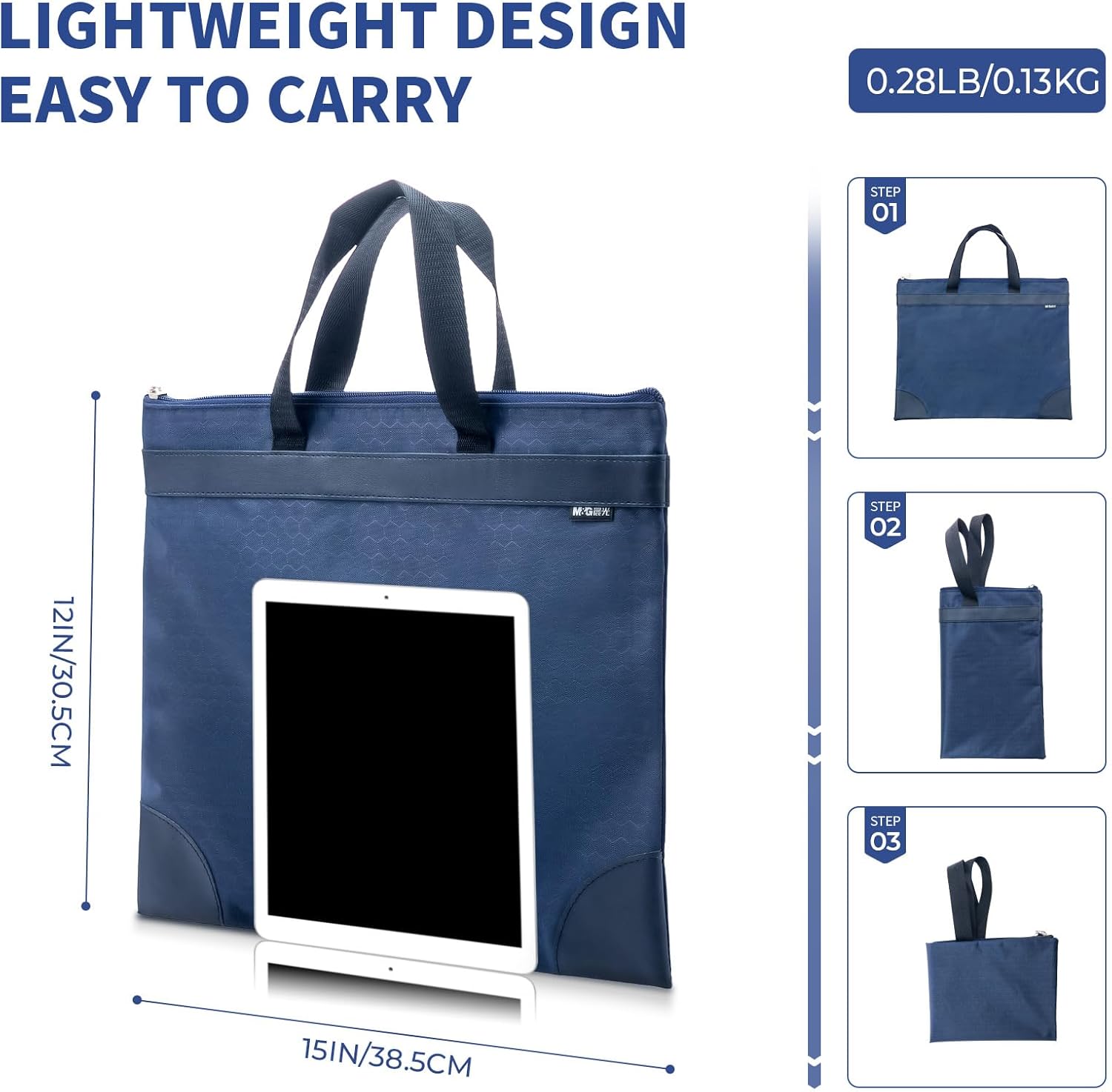 M&G 12×15 in Large Zipper Pouch with Handle, A4 Foldable Lightweight Pocket Waterproof Oxford Document Storage Bag, File Organizer for Office Travel Books Papers Filing Folder – 1 Pack (Blue)