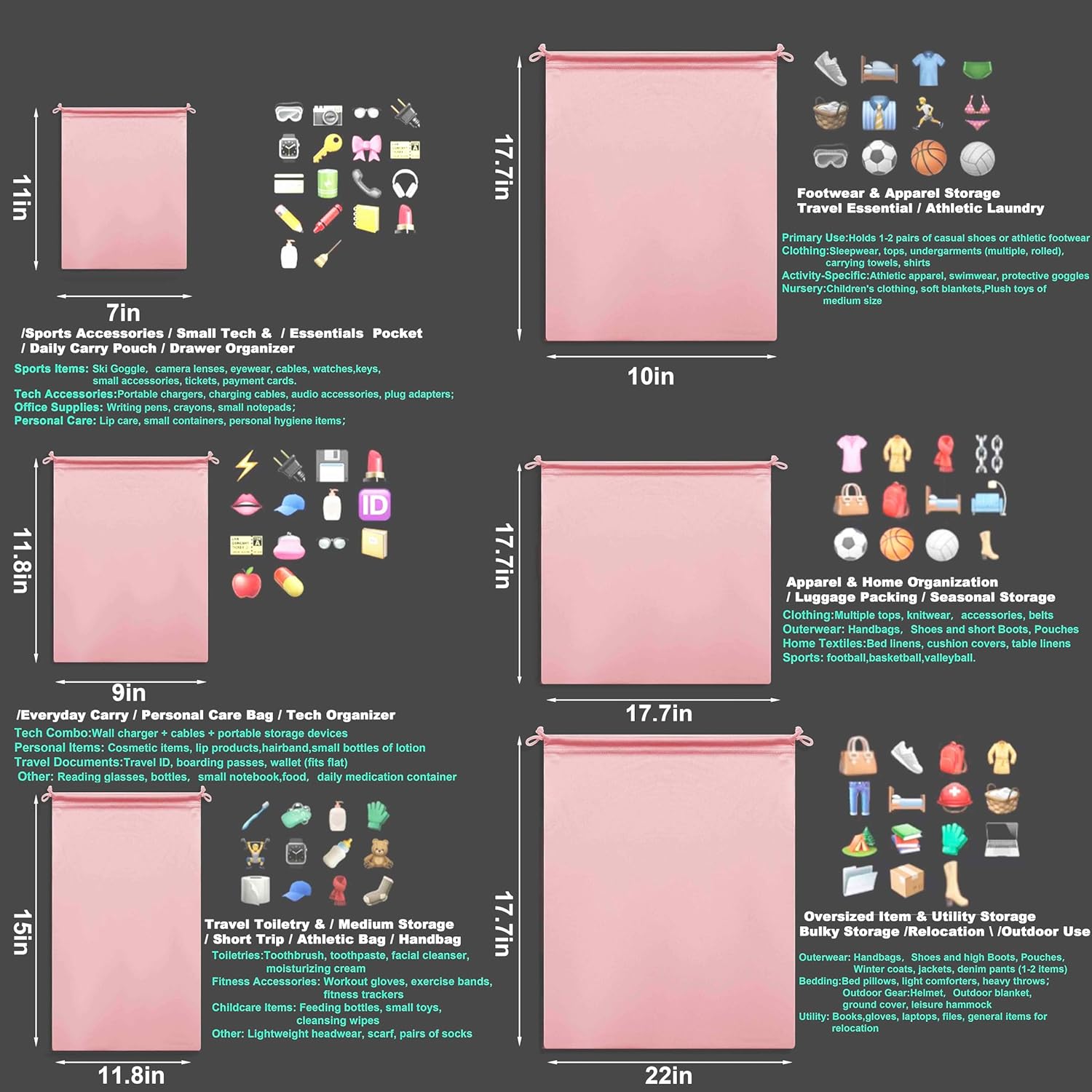 ✅ Why Our Bags Stand Out from the Rest We focus on the details that matter: ✔ Superior Durability: Thicker than standard microfiber bags, with reinforced drawstring seams to avoid fraying ✔ Precision Sizing: Each size is tested with real items to ensure a snug yet not tight fit (no more squishing or loose sagging) ✔ Eco-Conscious: Reusable design reduces waste from disposable plastic bags; dyeing process is gentle on skin and stored items