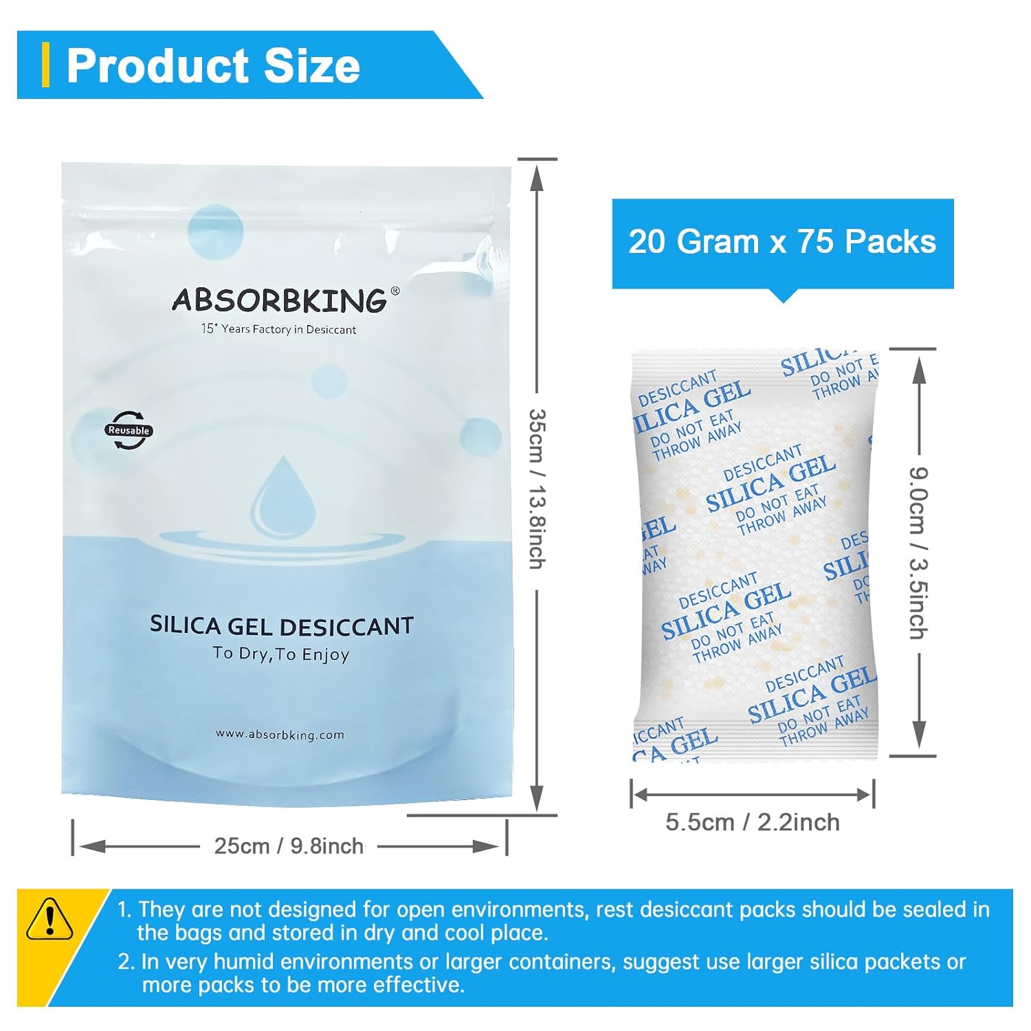 【ABOUT OUR DESICCANT PACKS】– We’re a factory on producing silica gel packets for more than 15 years, always control quality by strictly. You’ll get 75 Packs of 20 Gram silica gel packets, pls keep them in a resealable bag, in case desiccants combine with moisture in the air.