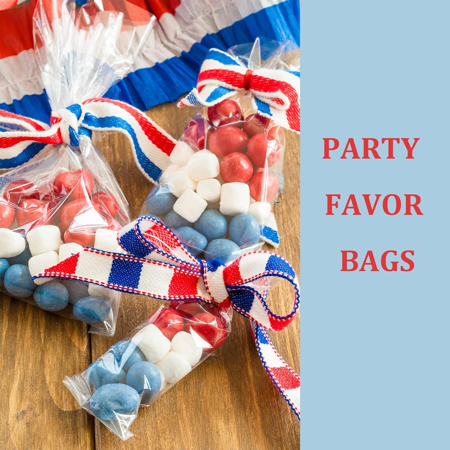 Practical Design: High transparent,classic clear gift bags, built-in any item can be clearly visible.The stronger candy bags have reliable vapor blocking properties. Try a colorful ribbon, twine, or twist tie bow for a finishing touch