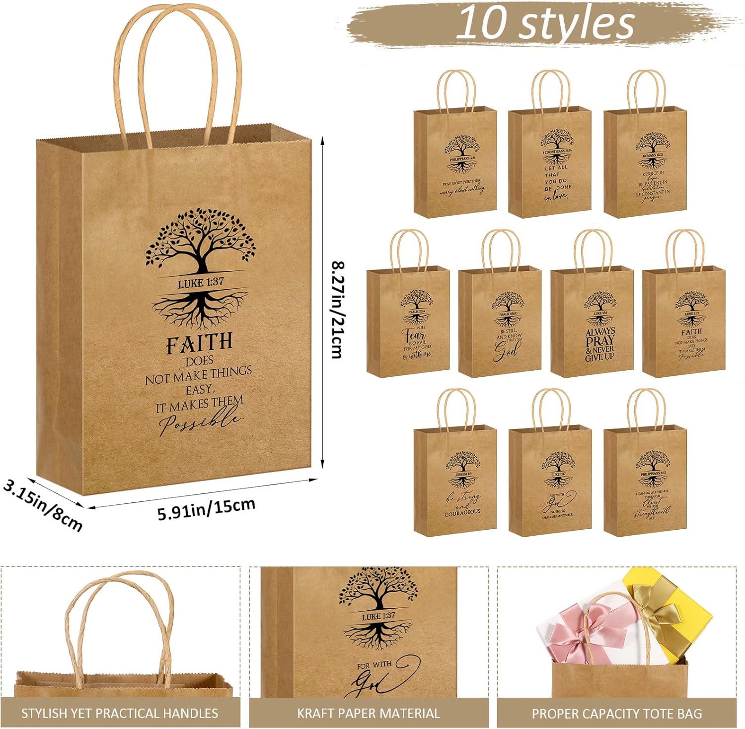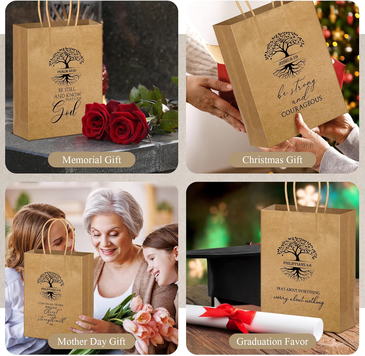 Inspirational Verses Designs: imprinted with the Tree of Life biblical design, these gift bags are most fitting for all occasions, be it birthdays, Christmas, or parties; Perfect for packaging gifts for neighbors, teachers, friends, customers, colleagues, etc