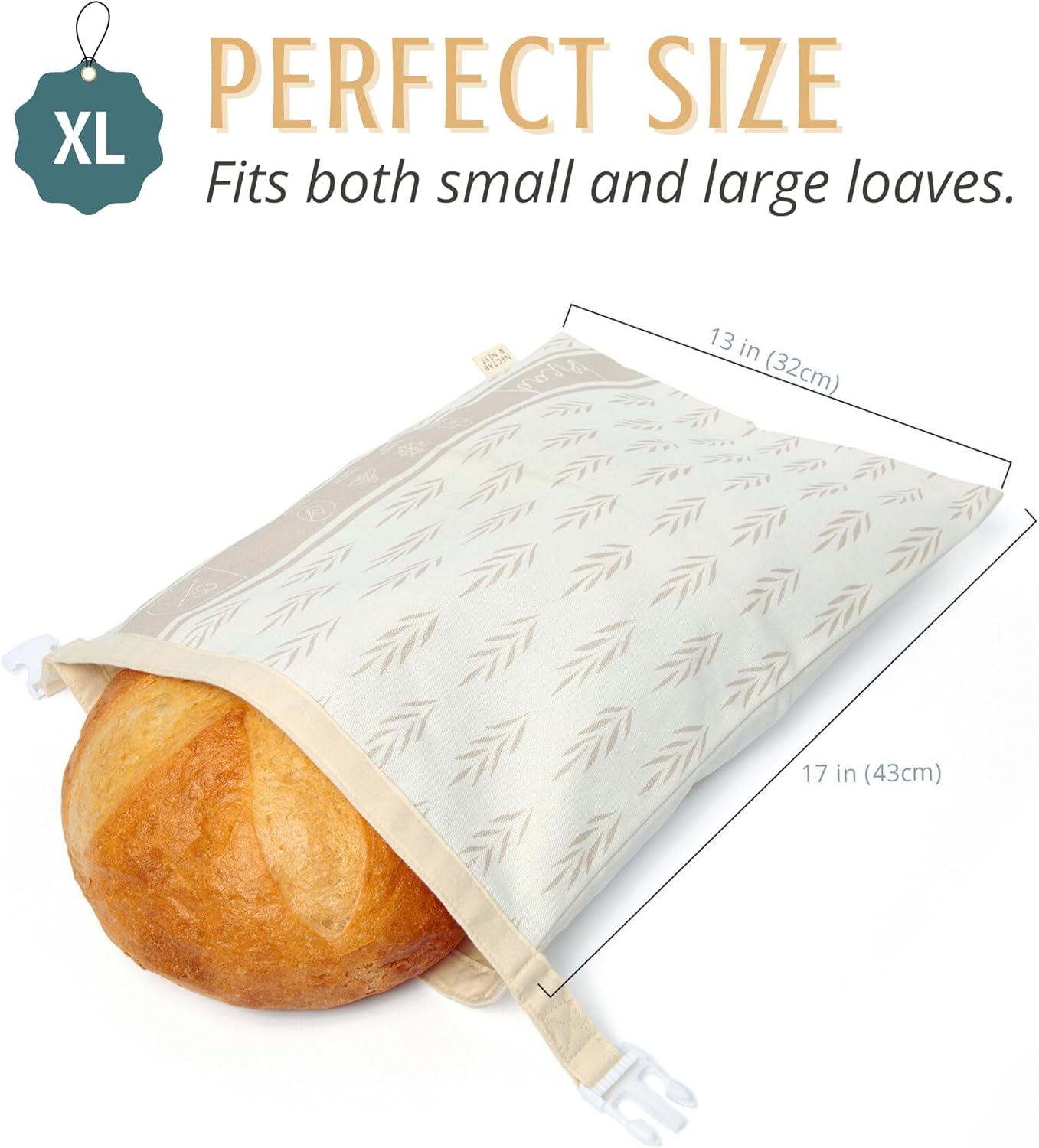 Locks In Freshness: The natural beeswax lining of our cotton cloth bags creates a breathable barrier, sealing in moisture and maintaining the homemade goodness of your bread and baked goods. The 2-pack sourdough bread storage bags helps ensure it retains its irresistible freshness for an extended duration.