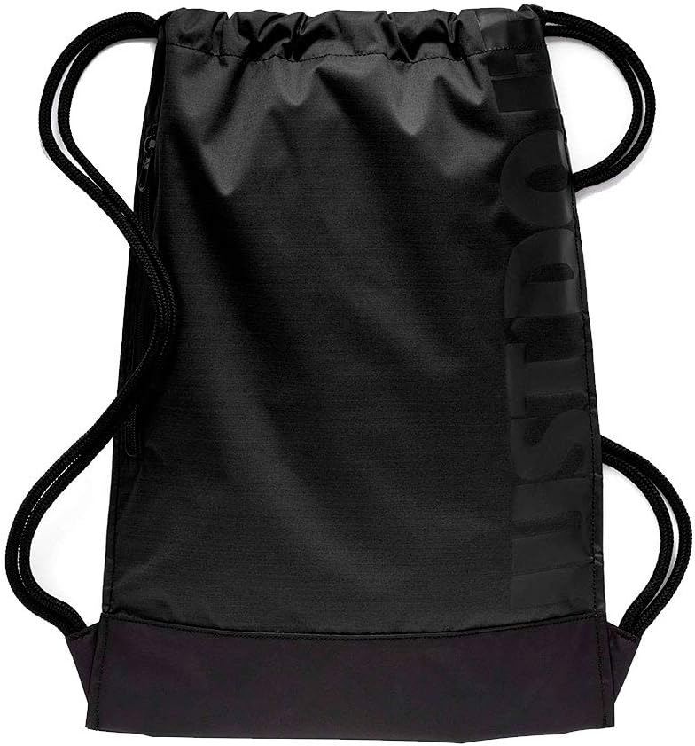 Nike Brasilia Training Gymsack, Drawstring Backpack with Zipper Pocket and Reinforced Bottom, Black/Black/White