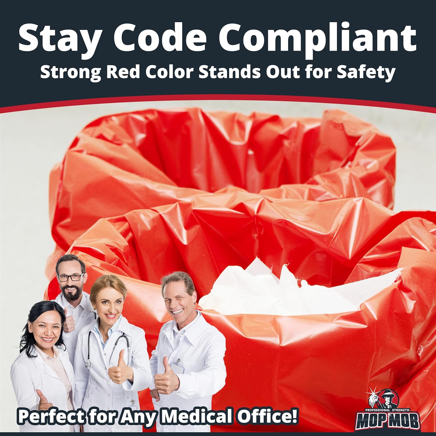 STRONG RED COLOR STANDS OUT FOR SAFETY. The deep red color of our bags lets everyone in your hospital know that these bags contain hazardous waste. Keep your facility up to code, and keep your staff safe and aware, with our stand-out red bags.