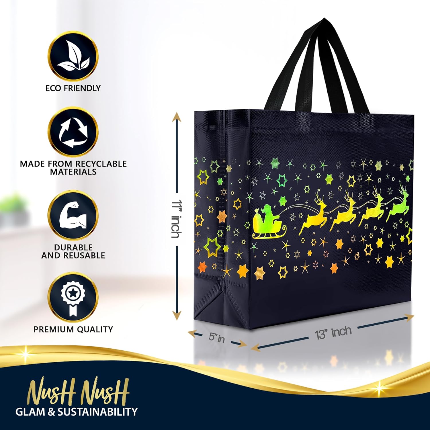 GIFT WITHIN A GIFT – Give your gift in style with Nush Nush Elegant and Eco-Friendly reusable Christmas large gift bags. Such a reusable gift bag will be a wonderful addition to any present as it is likely to serve as an extra gift that will be cherished and reused by the receiver again and again.