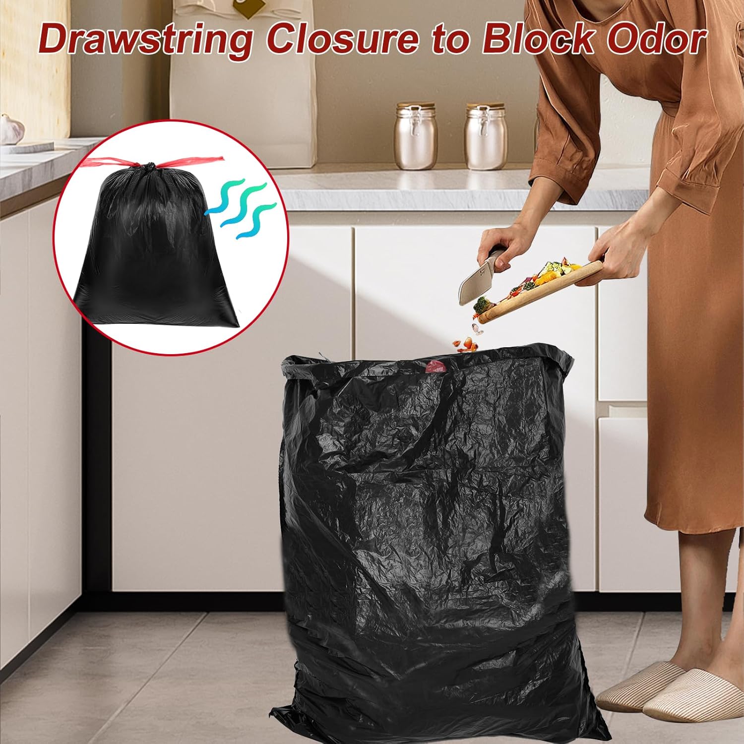Drawstring Design: Durable drawstring design, can ensure the closure of garbage bags, will not be easily dispersed, easy to carry