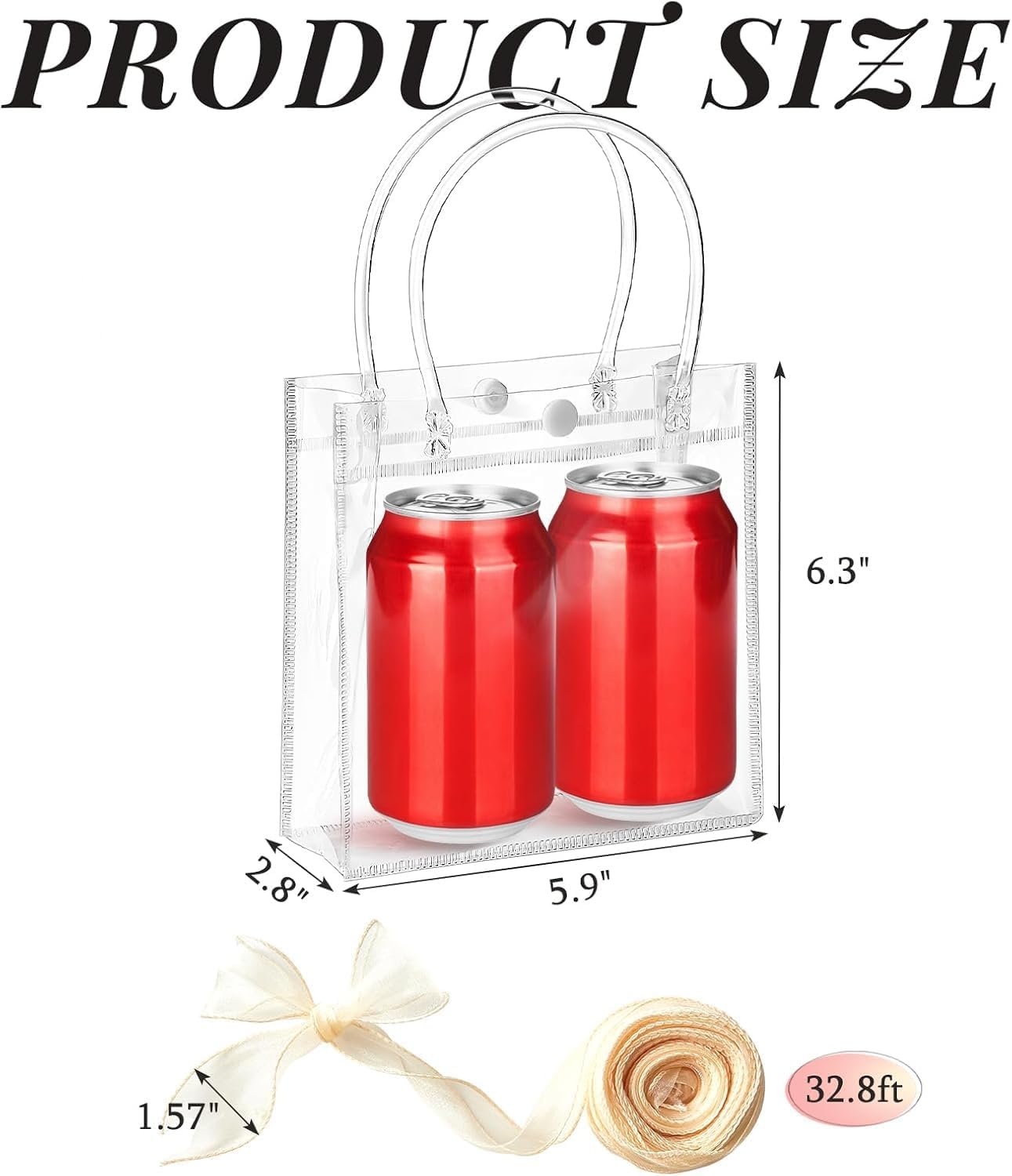 Are you having trouble in finding a beautiful gift bag to wrap your gift? Our clear plastic gift bag with handle, simple and elegant, comes with a roll of 32.8ft champagne ribbon to meet your decorative needs.