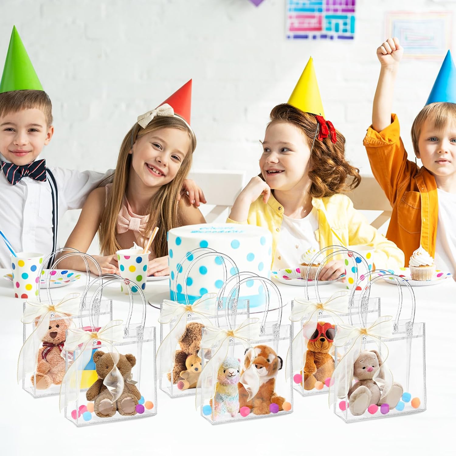 The transparent party favor bags have a water-resistant surface, can be washed with water and reused for long periods of time.