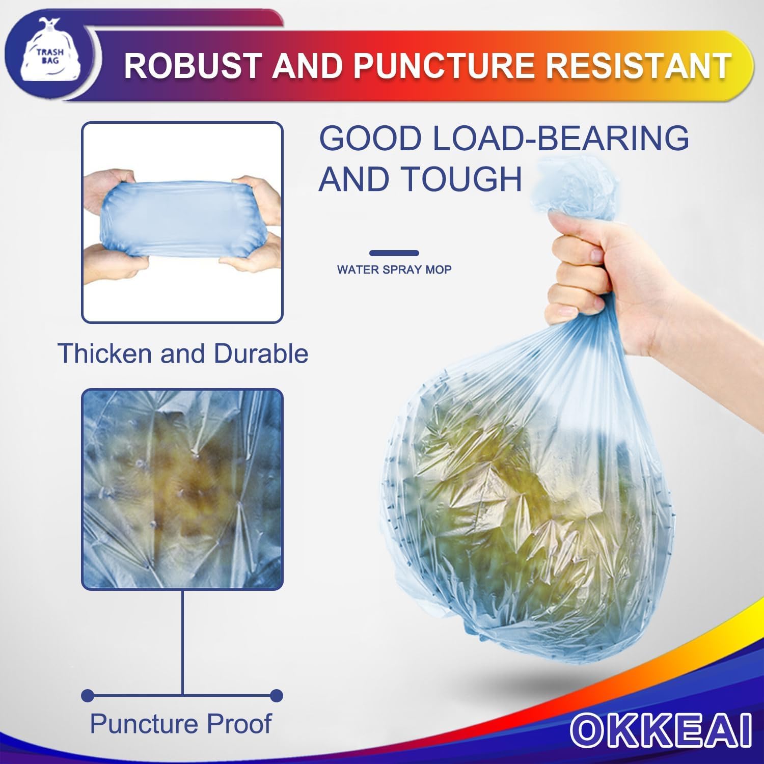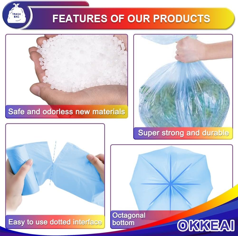 Trash bags Why Choose OKKEAI Trash Bags? Non-toxic and non odor Good toughness Leak-proof Esay to use Multi-purpose