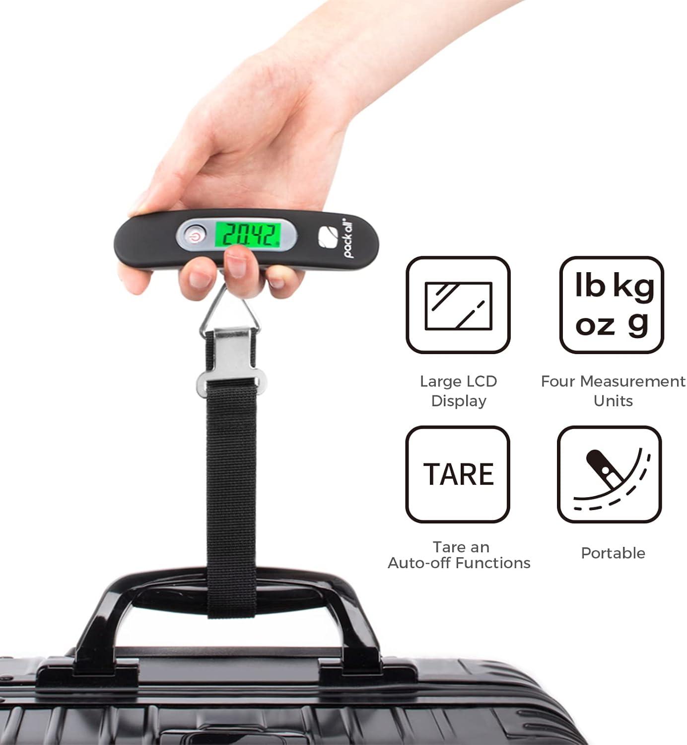 pack all 110 Lbs Luggage Scale, Digital Handheld Luggage Scale, Baggage Scale, Travel Weight Scale for Luggage with Backlit LCD Display, Battery Included, Black