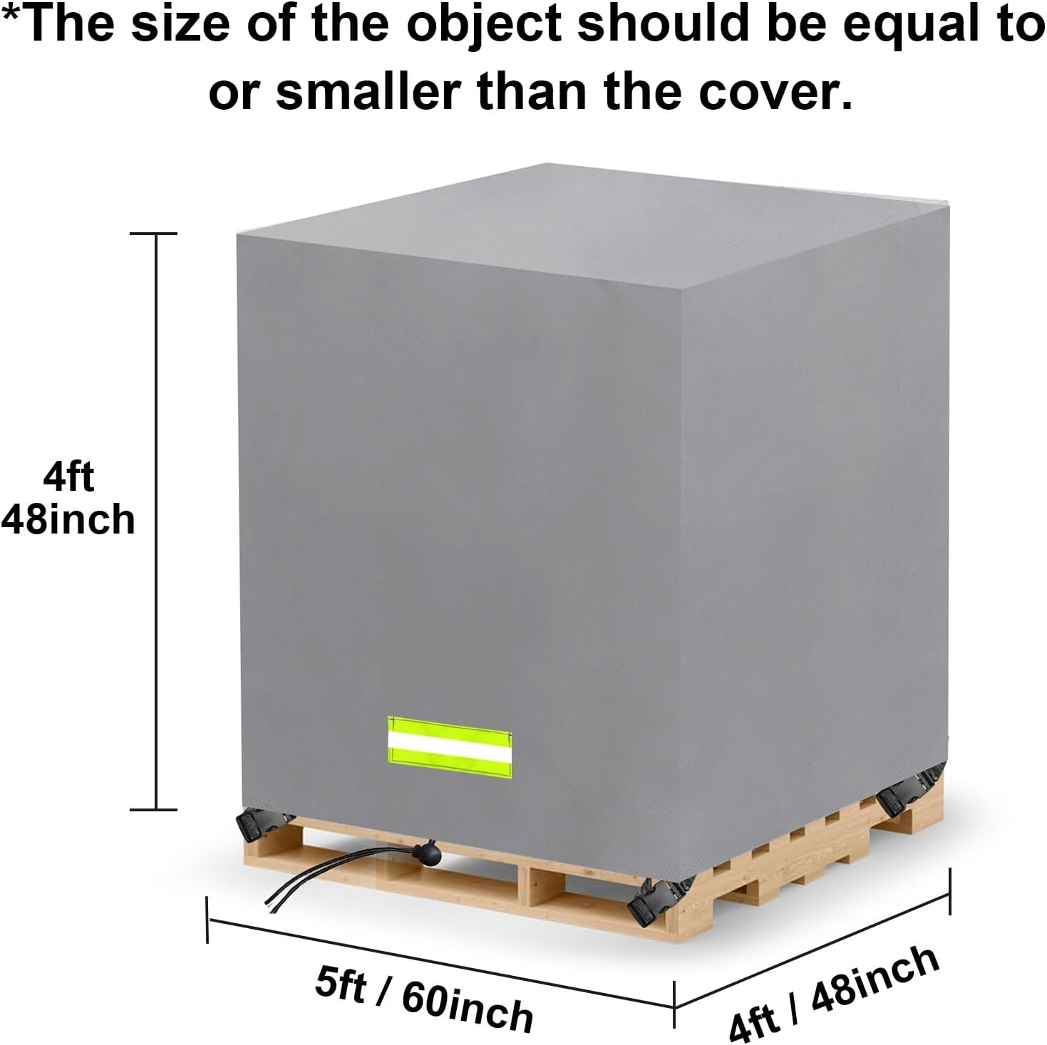 【Great Compatibility】Pallet covers measures 4 Ft. x 5 Ft. x 4 Ft. make these covers an ideal match for various items including pallets, external air conditioning units, generators, patio furniture, large equipment and more. Keep your equipment concealed and secure with its full-opacity, preventing any visibility of the covered contents.