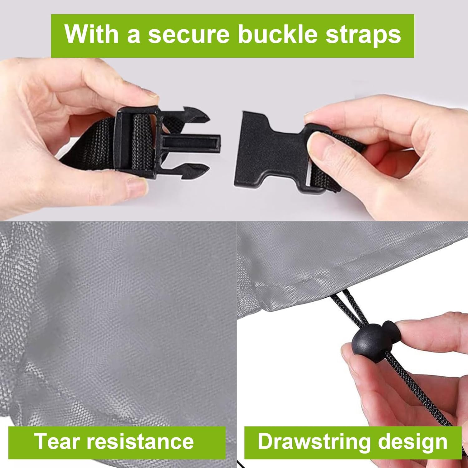 【Wind-proof Design】Pallet Cover for All-season, ensuring your valuables are safeguarded from sun, rain, wind, snow, dirt, debris, and other outdoor dust. The heavy duty black poly pallet cover specially designed with adjustable drawstring and 4 click-close windproof buckle straps for customized fit and security in the windy condition.