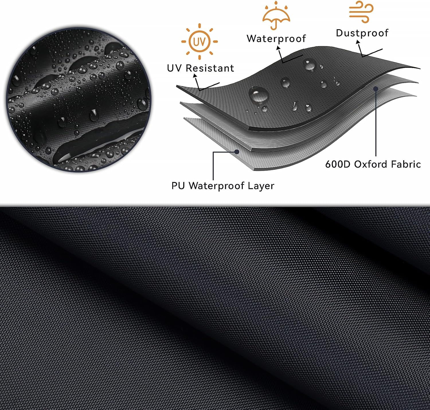 Water resistant, keep the patio dining table dry and prevent soaking.Durable material& double-threaded not easy to tear and rip.Strap at the bottom to secure the cover stay in place on windy days.For Pier pallet, no need to worry about rain, snow, sunshine, and other weather elements.Easy to manage, put on and take off the cover is a breeze.Keep your equipment concealed and secure with its full-opacity, preventing any visibility of the covered contents. Easy to clean, smooth fabric surfaces can be cleaned with damp cloth.